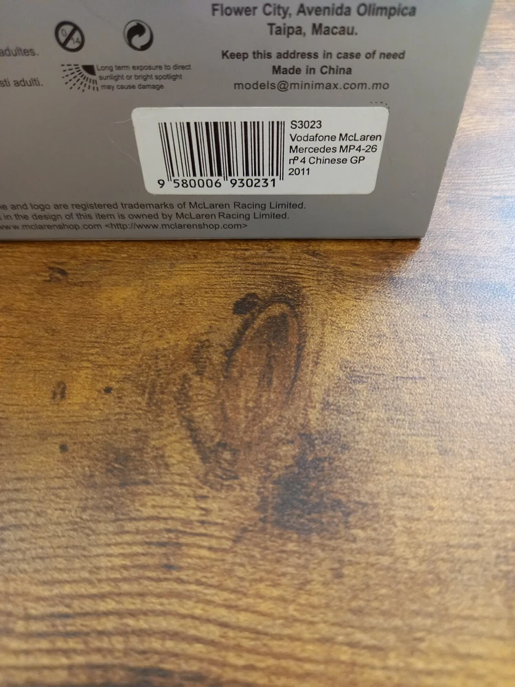 SPARK S3023 1:43 McLaren Mercedes MP4/26 China GP 2011 Jenson Button #4 Model