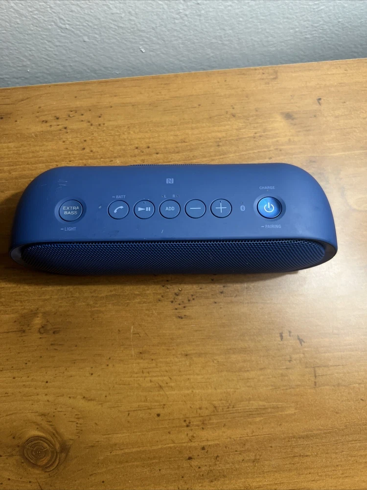 Sony SRS - XB20. This Water Resistant Bluetooth speaker is slightly used. Uses Micro USB to charge (NOT INCLUDED). Also has capacity for an AUX cable (shown in pictures).