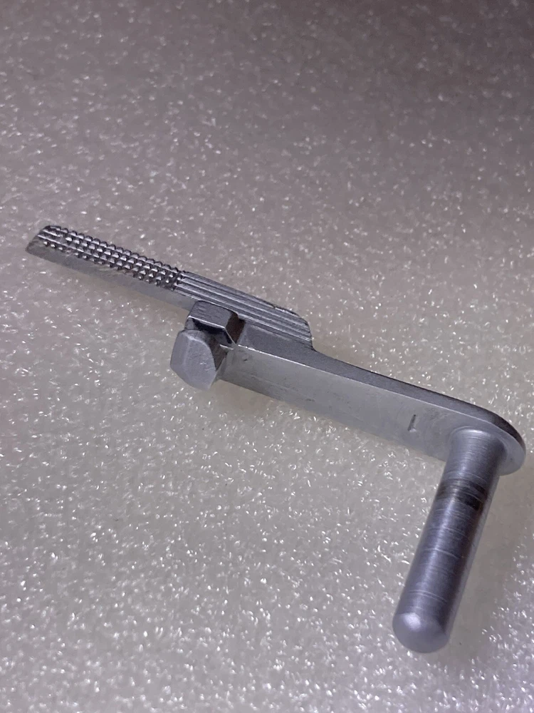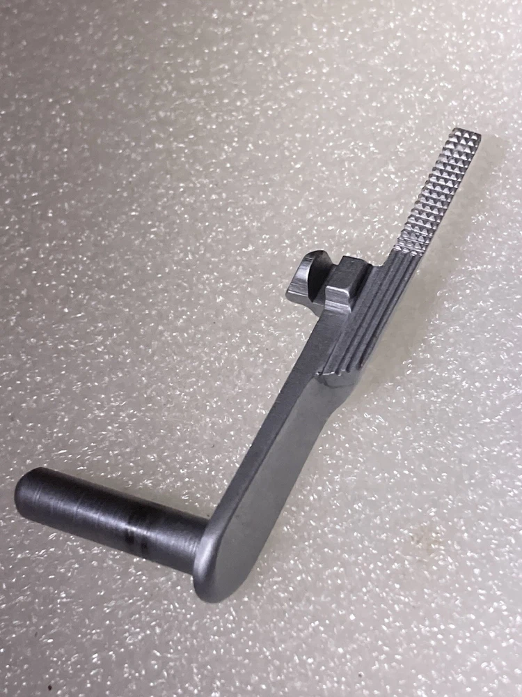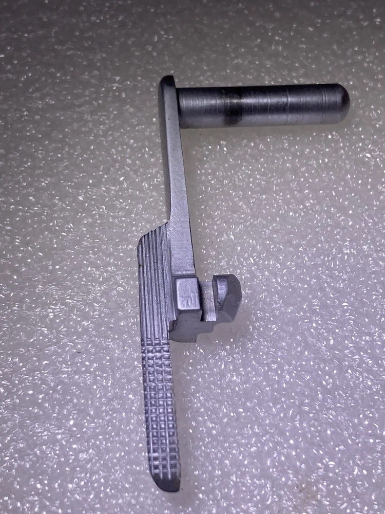 SS 1911 Extended Thin Slide Release, custom made, no mfg. mark. A magnet will attract this pistol part, although it appears to be stainless steel. Strong checkering on release pad, includes half serrations. Please view all of the images as they are a part of the description. 📸 Shipping in the USA is $6.00 for Ground Advantage Mail including Tracking and Insurance. 📮