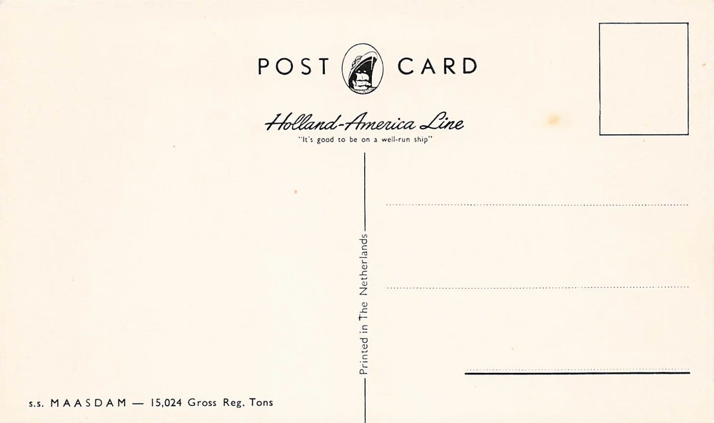 SS Maasdam Ship Steamer Holland America Line Vtg Postcard D64