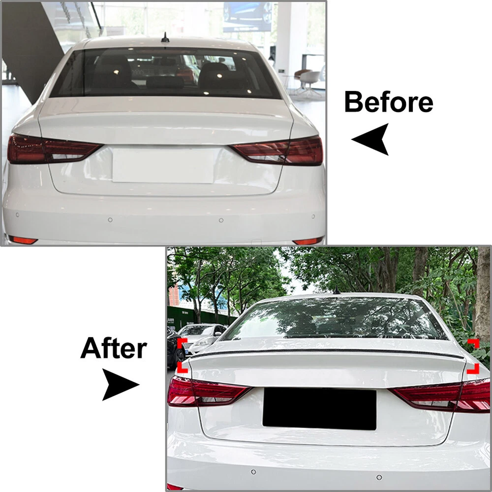 You may also like 4PCS Front Rear Metal 3D Brake Caliper Cover Medium+Small Universal Style Silver 40.68 USD Free shipping Front Grille Grill 4-PIN Chrome Black Fit Mercedes Benz E-Class W211 07-09 119.62 USD Free shipping Rear Bumper Lower Central Bar Trim Cover Fit Range Rover Evoque 2012-2018 40.82 USD Free shipping Right Side Fog Light Lamp Cover ABS For DODGE JOURNEY CHRYSLER 200 2011-2020 US 16.53 USD Free shipping Center Armrest Lid Cover For BMW Mini Cooper R55 R56 R57 R58 R59 2007-2015 24.47 USD Free shipping M5 x 0.8 Metric Thread Repair Install Tool Insert Kit M5 Helicoil Coil 25PCS US 15.2 USD Free shipping Product Description S Style Rear Boot Trunk Lip Spoiler Wing Fit Audi A3 S3 RS3 4-Door Sedan 2014-20 S Style Rear Boot Trunk Lip Spoiler Wing For Audi A3 S3 RS3 4-Door Sedan 2014-2020 Features: 1. It can effectively protect your car from damage. 2. Precision cut for perfect fitment, high degree of fit to your car. 3. Add downforce, detach airflow, enhance stability, reduce fuel consumption. 4. Made of high quality ABS plastic, waterproof, dirt resistant, scratches & wear resistant. 5. Gives your car a more aggressive rear end instantly and dramatically improve the sporty appearance. Specification: Condition: 100% Brand New Material: High Quality ABS Plastic Color: Glossy Black, Carbon Fiber Black Fitment Type: Performance/Custom Placement on Vehicle: Rear Fitment: For Audi A3 S3 RS3 4-Door/Sedan 2014-2020 Please kindly check our item description and photos, make sure this item fit for your car before place an order. Packing Included: 1Pcs Rear Trunk Spoiler Wing Notes: 1. No installation instruction included, professional installation is highly recommended. 2. Due to technology, the carbon fiber texture may be slightly deformation and difference. 3. The real color of the item may be slightly different from the pictures shown on website caused by many factors such as brightness of your monitor and light brightness. Payment Contact Us Shipment Returns Feedback We only accept PayPal payment. 1.Do not hesitate to contact us anytime before and after your purchase, we are committed to your 100% customer satisfaction. 2.I am here and ready to assist you with any questions or concerns you might have before or after the purchase. 3.My goal is to make sure you are a happy customer and pleasant shopping with us. 1. Ship from Chino, CA 91710 , and only to eBay ADDRESS. Package handling only takes 1 business day at our warehouse, so please make sure entering correct payment and shipping information before checking out. 2. We only ship to the Lower 48 states, and we do not ship to FPO, APO or PO Box addresses. 3. Import duties, taxes and charges are NOT included in the item price or shipping charges. These charges are the buyer responsibility.Please check with your country customs office to determine what these additional costs will be prior to bidding/buying. 1. If you receive any damaged or defective items, we will exchange it as quickly as possible. 2. You must contact us within 7 days of delivery of the product to notify us of any defects. 3. You need to send a picture to prove the problems by using ebay's attaching files button 4. Items must be in original box and kept in good condition. 5. Buyer is responsible for return shipping cost if there isn't any problem with the product. No matter the item is free shipping or not, we pay money for the shipping.You need to cover the actual shipping cost provided by us. If you are satisfied with the purchase and our total service, your comment is very important in our business success. Please take a minute to leave us a positive feedback with an overall Detailed Selling Rating (DSR) of 5. Our eBay account setup auto feedback, so eBay system gives you automatically Positive feedback back after your positive feedback left. If you plan to give us a neutral/negative feedback Or open ebay/paypal case, please write to us immediately so that we can do our best to resolve your problem. Payment We only accept PayPal payment. Contact Us 1.Do not hesitate to contact us anytime before and after your purchase, we are committed to your 100% customer satisfaction. 2.I am here and ready to assist you with any questions or concerns you might have before or after the purchase. 3.My goal is to make sure you are a happy customer and pleasant shopping with us. Shipment 1. Ship from Chino, CA 91710 , and only to eBay ADDRESS. Package handling only takes 1 business day at our warehouse, so please make sure entering correct payment and shipping information before checking out. 2. We only ship to the Lower 48 states, and we do not ship to FPO, APO or PO Box addresses. 3. Import duties, taxes and charges are NOT included in the item price or shipping charges. These charges are the buyer responsibility.Please check with your country customs office to determine what these additional costs will be prior to bidding/buying. Returns 1. If you receive any damaged or defective items, we will exchange it as quickly as possible. 2. You must contact us within 7 days of delivery of the product to notify us of any defects. 3. You need to send a picture to prove the problems by using ebay's attaching files button 4. Items must be in original box and kept in good condition. 5. Buyer is responsible for return shipping cost if there isn't any problem with the product. No matter the item is free shipping or not, we pay money for the shipping.You need to cover the actual shipping cost provided by us. Feedback If you are satisfied with the purchase and our total service, your comment is very important in our business success. Please take a minute to leave us a positive feedback with an overall Detailed Selling Rating (DSR) of 5. Our eBay account setup auto feedback, so eBay system gives you automatically Positive feedback back after your positive feedback left. If you plan to give us a neutral/negative feedback Or open ebay/paypal case, please write to us immediately so that we can do o
