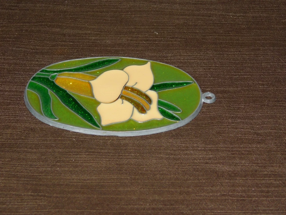 YOU ARE BIDDING ON..... STAINED GLASS PANEL 4 3/4" HIGH FLOWER WINDOW HANG SIGN SOME PREVIOUS DISPLAY WEAR ... PLEASE VIEW PHOTOS FOR CONDITION.***PLEASE E-MAIL IF YOU HAVE A QUESTION OR WANT AN ADDITIONAL PICTURE....PLEASE VISIT MY EBAY STORE FOR ADDITIONAL VINTAGE ITEMS..THANK YOU***12VBX1849-XXXX