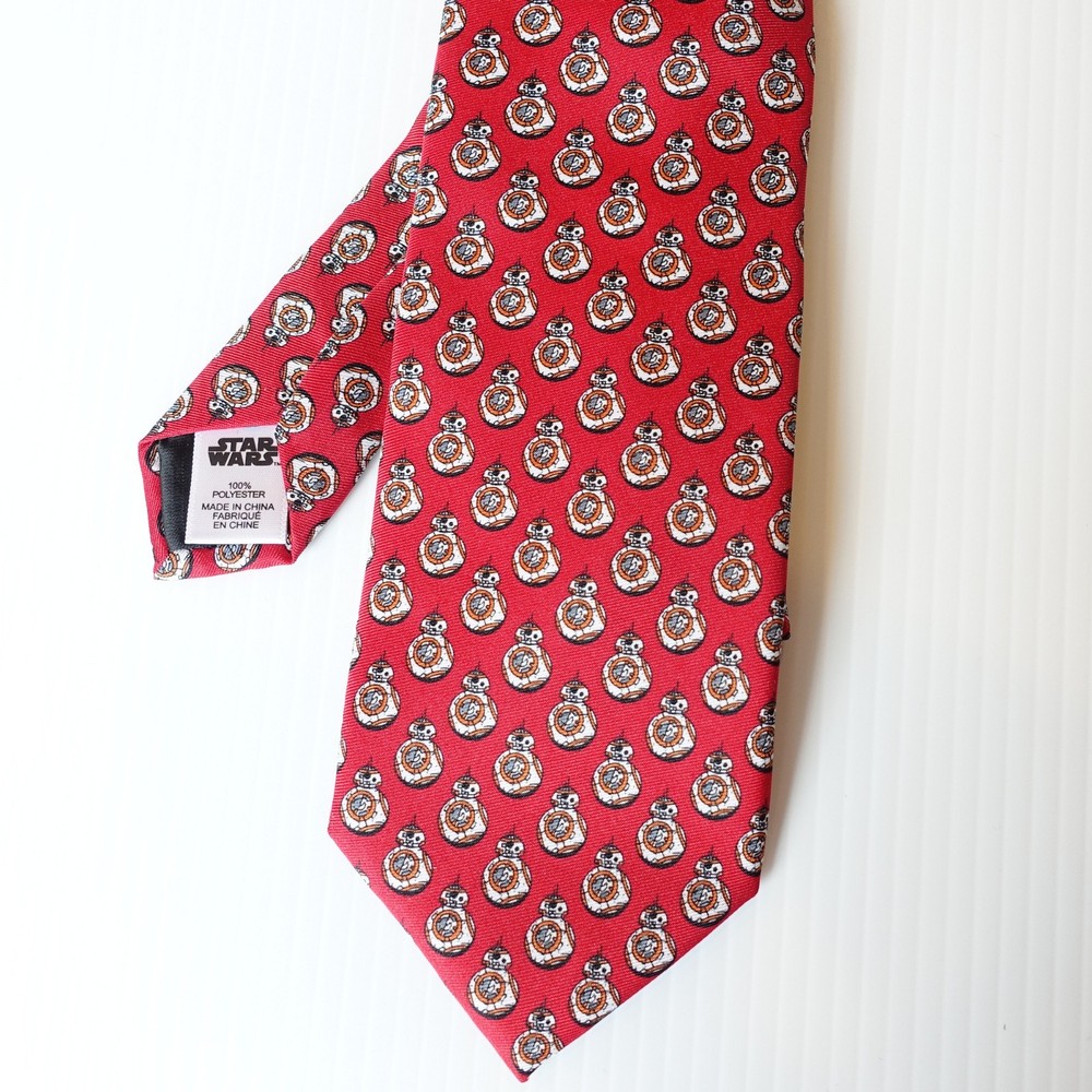 STAR WARS Red BB 8 Snow Man Christmas Satin Classic Tie Celebrate the holidays in a galaxy far far away alongside astromech droid BB-8 decked out in snowman attire with this cheeky tie from Star Wars. Brand: Star Wars Material: 100% Polyester STAR WARS Red BB 8 Allover Classic Tie Elevate your style with this Star Wars men's red neck tie featuring a classic look and an allover BB-8 pattern. Made of high-quality polyester fabric, this tie is durable and comfortable to wear. Its pointed style and classic width make it a versatile addition to any wardrobe. Perfect for any Star Wars fan, this tie is sure to add a touch of fun and personality to any outfit. Whether you're dressing up for a special occasion or just want to show off your love for the franchise, this tie is a must-have. Brand: Star Wars Material: 100% Polyester Cleaning: Dry Clean Color: Red Multi Width: 3.25" Condition: NWT - New with tag All items come from a non-smoking home. Cleaning: Dry Clean Color: Red Multi Width: 3.25" Condition: NWT - New with tag All items come from a non-smoking home.