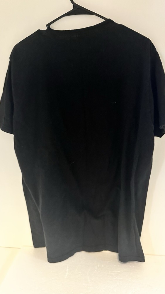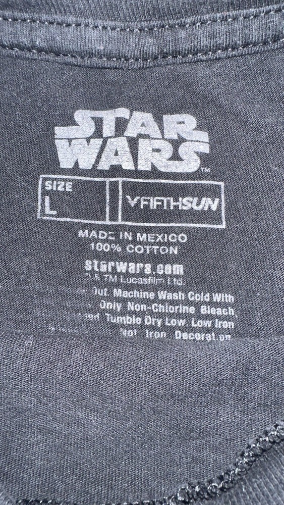Show off your love for the Star Wars franchise with this black Star Wars T-shirt featuring the iconic image of Baby Yoda from the popular TV series The Mandalorian. Made from comfortable cotton material, this short-sleeved crew neck tee is perfect for any fan of the series. The shirt is available in size large and is suitable for men. The shirt's design features the beloved character of Baby Yoda in a striking black color. The T-shirt is perfect for casual wear and is sure to make a statement wherever you go. Get your hands on this officially licensed Star Wars T-shirt today!