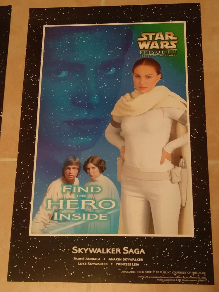 This is a STARS WARS PUBLIX FRITO-LAY LOT OF 4 EXCLUSIVE POSTERS from 2002. Posters measure 17 x 11 INCHES, are new and will shipped rolled. Please see pictures for best description. Shipping is FREE in the US.