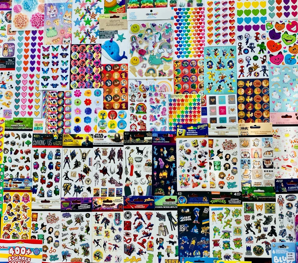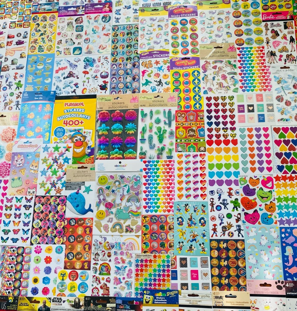 All stickers are BRAND NEW | Still in their original packaging! Mixed Sticker Lot | The Ultimate Kit | Qty. 800+ Stickers | High Quality Only! Fun Assortment of Puffy, Scrapbook, Cartoons, Bubble, Pop Up Stickers Packs For Everyone! You will receive 38+ Sticker Sheets of beautiful colorful assortment. I have included a large variety of pictures of the assortment available. The pictures give you an idea of what you will be receiving. Please Note: You will not receive everything pictured. Please contact me with any special requests. This HUGE Variety of fun designs stickers can be used in parties, classroom, school and home, good for reward for students, potty training, adding inside a birthday card, game activities, entertaining toddlers, etc. Perfect Gifts for Kids & all Occasions: Can be given as a gift for kids, girls, boys, toddlers, teens, students, friends, and classmates, they will love it! Each package of stickers is a different style & theme with some lovely embellishments like rhinestones, ribbons, buttons and other 3D details that make these quality stickers look so unique!