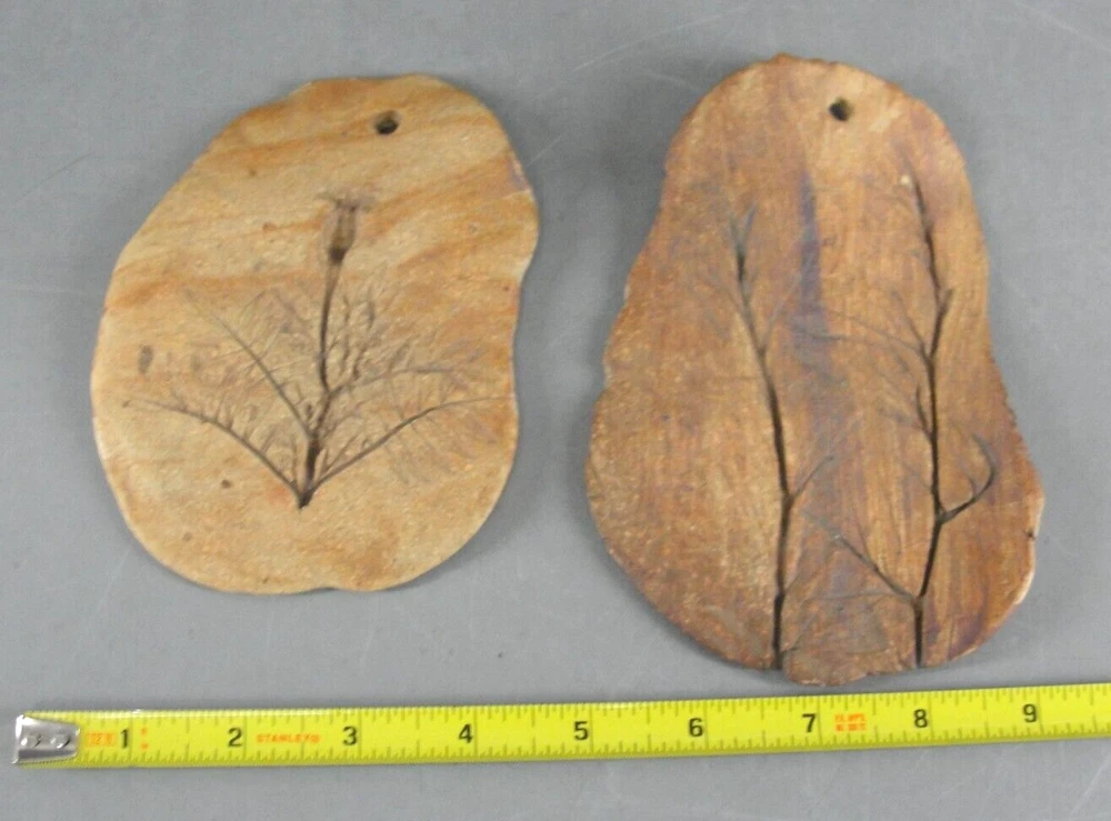 CLAY STONEWARE BRANCH LEAF FLORAL IMPRESSIONS π HANGING DECOR WALL TILE HANDMADE LOT 2 Up for your consideration is this Really Cool LOT OF 2 Wall Hanging Stoneware Plaques with natural impressions. These handmade plaques feature lovely impressions of natural flowers, branches, and leaves and have been stained in different styles. Each wall hanging plaque has a hole near the top so that you can attach twine or ribbon to hang from. Add these lovely wall hanging plaques to your collection or home decor. Please be sure to see all the other items we have listed. FEATURES: Handmade stoneware wall hanging plaques with natural impressions - Hole for Hanging - Made of Stone and stained (one has brush strokes and one has lighter faded lines) ADD. INFO: N/A INCLUDED: The actual LOT OF 2 Handmade Stoneware Wall Hanging Plaques pictured. NOT-INCLUDED: No original box, packaging, or paperwork. No props used for size reference. BRAND: Unbranded Unknown LABEL: N/A DIMENSIONS: The larger one measures just over 4" wide at the widest point x about 6-1/4" tall. The other plaque measures about 4" wide x 5-1/2" tall. COLOR: Natural Stone with brownish / orange stain TYPE: Collectibles, Stoneware Wall Hanging Plaques, LOT OF 2 MODEL #: N/A COPYRIGHT DATE: Unknown CIRCA: COUNTRY: Unknown MATERIAL: Stoneware / Clay? CONDITION: This LOT OF 2 comes to you in overall excellent condition. There are no cracks or chips in the stone. AUTHENTICITY and your SATISFACTION are UNCONDITIONALLY 100% GUARANTEED!!! Once you get it - if you are not thrilled just let me know - I gladly accept returns. Check my feedback and buy with complete confidence I have been selling on eBay everyday since 2001. SHIPPING DETAILS: The buyer pays for securely packed EXPEDITED shipping. It will include tracking and insurance. For premium services delivery to your address will usually take between 3 to 5 days. I will always combine shipping to save you money whenever possible, just email us to let us know. Please be sure to click on the shipping tab to compare rates and see all of the options available for shipping, some options cost less than others. SHIPPING CONDITIONS: *** Please Take Note!!! When paying we can ONLY ship to the address that is included with your payment . If you need it sent to a different address please change that PRIOR to making payment. We can no longer change the ship to address. LOC: D 4 H You really like the thing, but not so much the price... I find cool stuff, do some research and list it for what I think it's worth. Sounds pretty simple but sometimes not. So if this is something you really like but its a bit more than you had hoped to pay, then be sure to watch this because I can't send it to the bank, and if it ends without a buyer chances are good that I will drop the price and re-list it until it does sell! Two things for sure - it will get sold sooner rather than later, and that's better for both of us. International Buyers We will ship to most, but not all locations around the world. We use Priority Mail, and it will include full insurance and delivery confirmation. Unfortunately we do not ship using first class international mail because there is no insurance available. "Import Duties", "Tariffs" and "Taxes" are NOT included in the item price or shipping charges. These charges are imposed and collected by your country and are your responsibility. Please check with your country's customs office to determine what these additional costs (if any) will be prior to bidding/buying. These charges are normally collected by your customs office when you pick the item up or upon delivery ? please do not confuse them with shipping charges, they are not. Buyers using the Ebay Global Shipping Program will be shown these cost prior to purchase. We can NOT reduce the value on the "Customs Forms". The sales prices is automatically entered and also sets the maximum amount that the item can be insured for. We can not mark items purchased by you as "gifts". Some countries restrict or prohibit the import of certain items such as currency - jewelry or animal parts such as teeth, claws, horns or shells from many creature on the endangered specie list. The lists varies widely and changes often. It is your responsibility to check and make sure your country allows this specific item to be imported by you. We take a great deal of pride in our feedback rating and never want you surprised by anything you get from us. PLEASE If there is ever an issue, all we ask is that you give us an opportunity to address it BEFORE leaving feedback. Overall General Condition New Excellent Very Good Good Fair Poor Appearance Brand new and never used. No visible flaws in appearance. First quality, suitable for a gift. Like new condition. Upon close inspection some very minor signs of use or wear, but no serious flaws. Obviously used but kept in great conditional and well cared for. Expected normal signs of wear but no abuse. Clearly used allot, enough to cause significant signs of wear. See item description for more details on further future use. Used extensively, many cosmetic flaws and signs of wear. Questionable functionality Sold "AS IS" Used extensively with abundant and major cosmetic flaws. Likely non- functional. Sold "AS IS" for decorative use only. HUGE eBay STORE; If you liked this item, then you should take a look at some of the other items I have listed, some listings are "Buy-It-Now" and may even have a "best offer" and occasionally go on sale. It's a "virtual treasure trove" crammed full of 100's & 100's of old, new, odd & unusual items!! New items are added weekly. So take a minute and visit our store to see thumbnail pictures of all our items. Just click on this VISIT MY STORE link. You can also quickly search by "word" or just browse by category. If you enjoyed looking at our item please do add us to your favorite seller's list. Just click the following link to ADD US TO YOUR FAVORITE SELLER LIST Thanks for your confidence and hope to hea