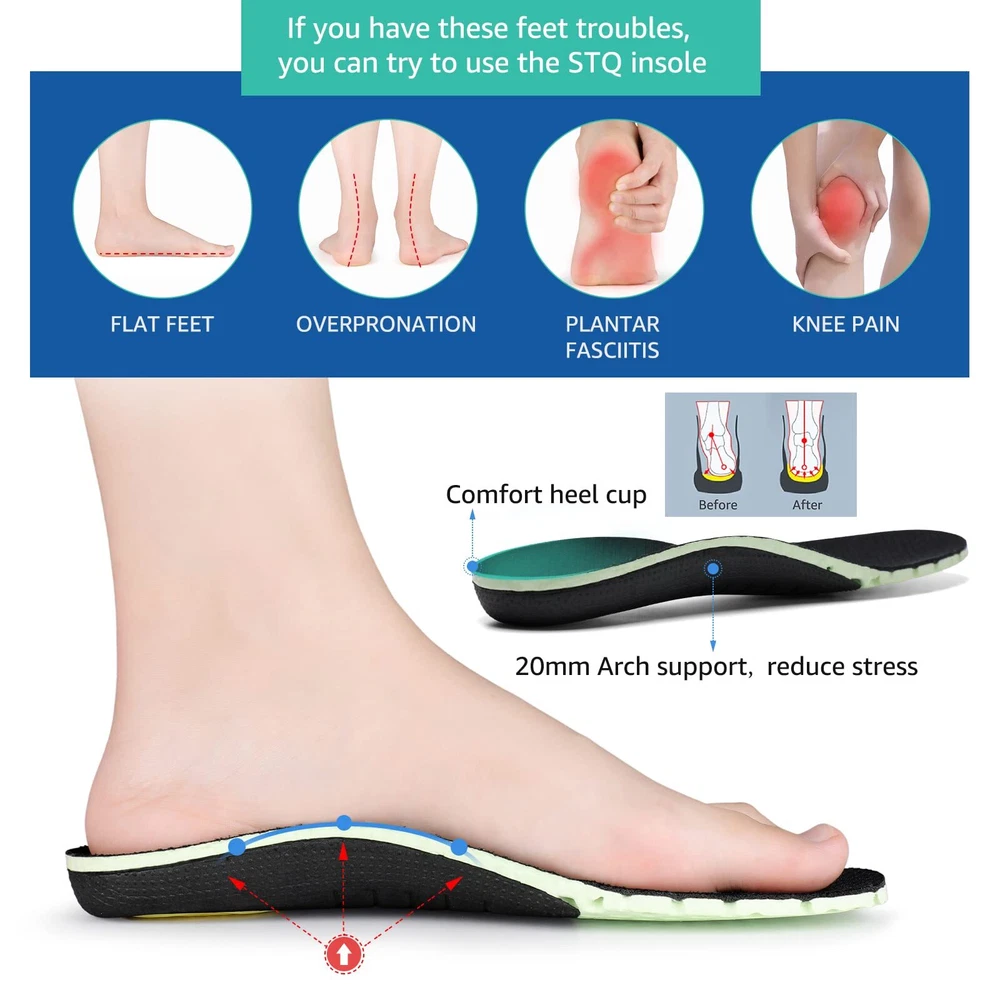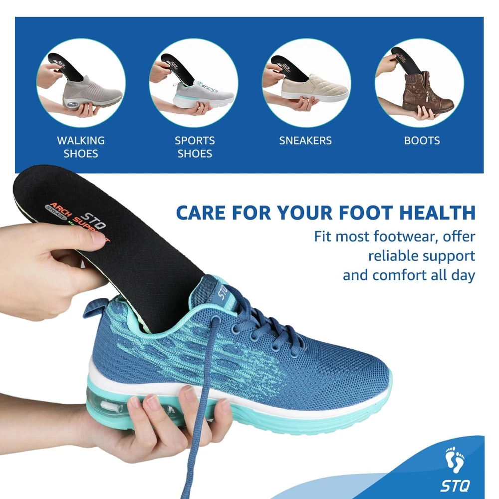 STQ Arch Support Insoles for Women, Orthotic Memory Foam Shoe Inserts for Plantar Fasciitis, Pain Relief, High Arches, Comfort Gel Washable Shock Absorption Insoles Black 7/7.5 [ Foot Pain Relief ]: Has the neutral arch support to help stabilize and support the foot, which can help reduce stress on feet, ankles, knees and back. These plantar fasciitis insoles can relieve foot pain caused by long time standing, flat feet, heel spur, plantar fasciitis, fallen arch, bunions, achilles tendonitis and also ball of foot pain. For reliable support and comfort for up to 12 months or 500 miles [ Maximum Cushioning ]: Built with Gel heel pads and extral full-length cushioning to provide all-day shock absorption, helps reduce shock by 40% and stay energized while you walking. Deep heel cup maintains correct foot positioning, adding stability and motion control to limit excess stress on feet, ankles, joints, and tendons [ 4-layer Comfort ]: The Quadra layer comfort arch support insoles are specially made with dual layer high-density foam to absorb impact and conform to the unique shape of your foot. Breathable and skin-friendly to promote air flow. The elastic EVA layer supports and cushions the foot for long-lasting comfort [ Odor-control ]: These machine washable memory foam insoles feature breathable holes and activated carbon-like moisture management system which keep your feet dry and fresh [ Designed for Women ]: Designed for women who experience foot discomfort, plantar fasciitis or suffer from lower back pain and Foot & Leg fatigue from being on their feet. Fits Running Shoes, walking Shoes, Cross-Trainers and boots or some casual / dress shoes. The first time wearing these insoles may need a few hours transition period until feet are accustomed to all day support and stability [ Foot Pain Relief ]: Has the neutral arch support to help stabilize and support the foot, which can help reduce stress on feet, ankles, knees and back. These plantar fasciitis insoles can relieve foot pain caused by long time standing, flat feet, heel spur, plantar fasciitis, fallen arch, bunions, achilles tendonitis and also ball of foot pain. For reliable support and comfort for up to 12 months or 500 miles [ Maximum Cushioning ]: Built with Gel heel pads and extral full-length cushioning to provide all-day shock absorption, helps reduce shock by 40% and stay energized while you walking. Deep heel cup maintains correct foot positioning, adding stability and motion control to limit excess stress on feet, ankles, joints, and tendons [ 4-layer Comfort ]: The Quadra layer comfort arch support insoles are specially made with dual layer high-density foam to absorb impact and conform to the unique shape of your foot. Breathable and skin-friendly to promote air flow. The elastic EVA layer supports and cushions the foot for long-lasting comfort [ Odor-control ]: These machine washable memory foam insoles feature breathable holes and activated carbon-like moisture management system which keep your feet dry and fresh [ Designed for Women ]: Designed for women who experience foot discomfort, plantar fasciitis or suffer from lower back pain and Foot & Leg fatigue from being on their feet. Fits Running Shoes, walking Shoes, Cross-Trainers and boots or some casual / dress shoes. The first time wearing these insoles may need a few hours transition period until feet are accustomed to all day support and stability Shipping from the USA All of our products are shipped from the USA, ensuring quick delivery to your destination. Payment We offer the following payment methods: PayPal, credit card, bank transfer, and eBay's secure payment system. Free Shipping & Free Returns Shipping within the USA is FREE. Additionally, any return is absolutely free for you. Risk-Free Purchase You have the option to return an item within 30 days without any justification. We cover the return shipping costs! Fast Shipping We ship immediately upon receipt of payment. Generally, the package is delivered within 2-3 days in the USA. If it takes longer, we will contact you. Quality and Costs Made in Europe, USA, China No customs fees or additional charges Total satisfaction guarantee Invoice with declared VAT available upon request in .pdf format Feedback Your feedback is very important to us. After you pay for your purchase, you will automatically receive positive feedback from us.