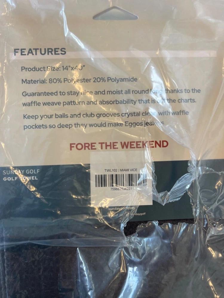 SUNDAY GOLF "Miami Vice" Microfiber golf towel, Very cool! Brand new with Tags! Fast Shipping, Free Shipping! Buy It Now!