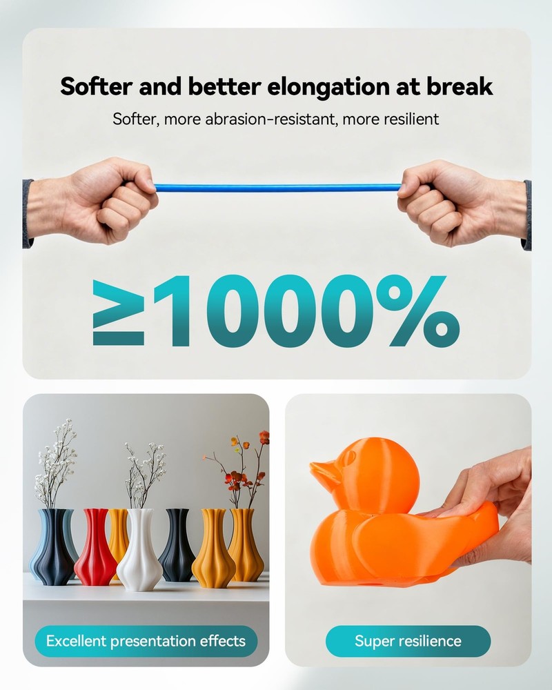 SUNLU TPU 3D Printer Filament 1.75mm,Highly 90A TPU, 90a 1kg Tpu Green Description Features: ①,【TPU 3D Printing Filament】- TPU filament is made of flexible thermoplastic polyurethane, featuring Shore hardness of 90A, and Items printed with it are wear-resistant and have a certain degree of elasticity, enabling them to easily withstand violent collisions during movement. ②,【Excellent Layer Adhesion】- SUNLU TPU sets the standard for perfect interlayer adhesion, offering optimal layer bonding and a flawless smooth surface. It can be printed perfectly without the need for adhesive, delivering impressive results. ③,【Exceptional long-lasting cleaning performance】- SUNLU TPU filament has excellent properties, with 99.9% high-efficiency purification, ensuring that printed works remain clean for a long time. It also has excellent aging resistance, extending its service life. ④,【TPU Recommend Settings】- We recommend printing at a nozzle temperature of 220-240°C, bed temperature of 50-60°C, printing speed of 40 mm/s, faster and better.Press here to print the parameters for the best finished model results. ⑤,【TPU 1.75mm Diameter】- Dimensional Accuracy +/- 0.03mm. SUNLU filament has wide compatibility due to the small diameter error, it's suitable for almost all 1.75mm FDM 3D printers. ⑥,【Multiple Color Available】- SUNLU 90A TPU filament offers a variety of color options, ranging from classic black and white to vibrant khaki, to meet users' diverse printing needs and pursuit of individual beauty. ⑦,【Less Stringing & No Blocking】SUNLU TPU filament is specially engineered to reduce stringiness and eliminate clogging, ensuring a smooth and consistent print every time. ⑧,【Vacuum Packaging】- SUNLU 3D Printer Filaments are sealed in airtight vacuum packaging which ensures that they remain moisture-free and preserve their quality from the factory to your 3D printer. ⑨,【Unlock Your Creativity】- SUNLU TPU filament 1.75mm has wide applications including wear seals, plugs, gaskets, sheets, key ring cases for mobile hands-bike parts shock, and Wearable Devices/Protective applications such as insoles, watch bands, phone cases, drone parts and more ⑩,【SUNLU Main 3D Products】- SUNLU offers a wide range of high-quality 3D printing products, including 3D printer filament, filament dryer, 3D printer resin, resin curing box, and other accessories, providing you with everything you need for a successful 3D printing experience. Product Details: Handling We will ship all orders within 3 business day of payment. Delivery We Do Not Ship Outside of the Continental US. Return Policy All items qualify for returns within 30 days of receipt. Buyer is responsible for return shipping on any item that is not damaged. Feedback We take our reputation seriously, we buy and sell online, so we understand the value of trust. If you are unsatisfied with your order, please contact us and we will work with you to resolve it to your satisfaction.