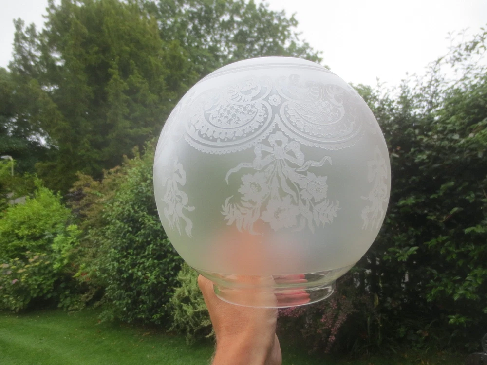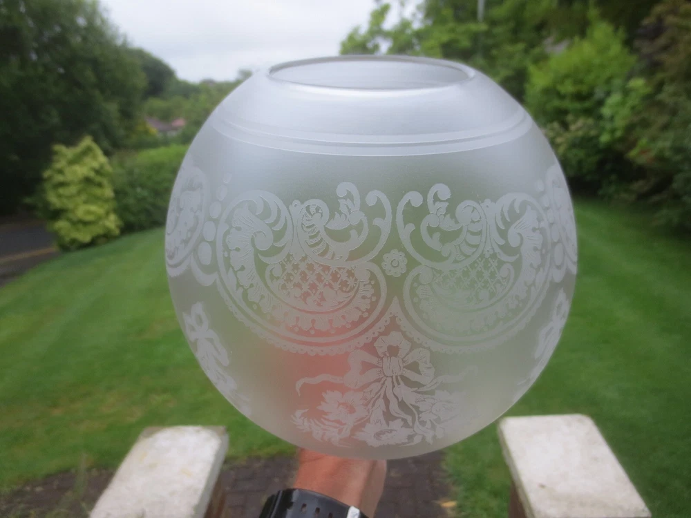 UP FOR AUCTION IS THIS ORIGINAL GLASS DUPLEX OIL LAMP SHADE, WHICH WILL FIT A STANDARD DUPLEX BURNER. IT IS APPROX 7 1/4 INCHES IN HEIGHT. THE BOTTOM STRAIGHT FITTER IS APPROX 4 INCHES. CHIPS ON THE FITTER RIM AND TOP OPENING THE GLASS DOES CONTAIN SOME AIR BUBBLES, SMALL SURFACE SCRATCHES AND BLOWING IMPERFECTIONS TO BE EXPECTED OF ANTIQUE GLASS. IF YOU REQUIRE FURTHER INFORMATION OR EXTRA PHOTOS, PLEASE CONTACT ME. PLEASE NOTE, ANTIQUES WHICH ARE MANY YEARS OLD WILL NOT BE IN BRAND NEW AND UNTOUCHED CONDITION. ANY MAJOR DAMAGE OR FAULTS I WILL TRY AND POINT OUT. EVEN WHEN THEY ARE IN GREAT CONDITION, THEY WILL HAVE SOME WEAR COMMENSURATE WITH THEIR AGE AND USE. PLEASE TAKE THIS INTO ACCOUNT. FOR MORE INFORMATION OR EXTRA PHOTO'S PLEASE CONTACT ME.