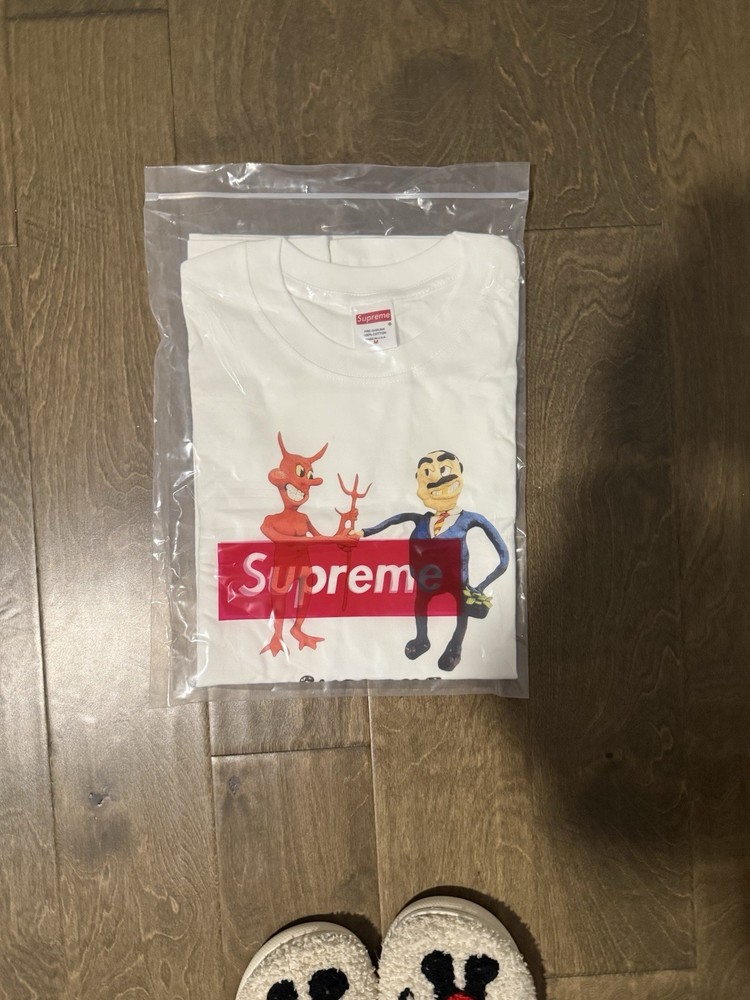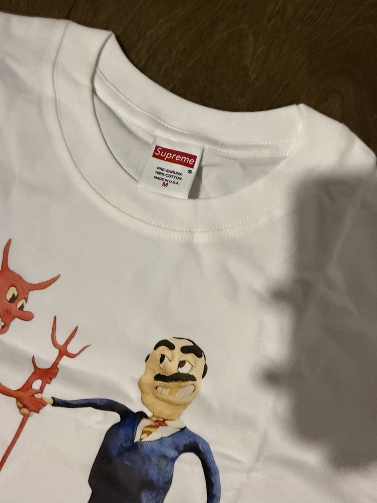 The Supreme Business Tee in white, size medium, is a solid short sleeve crew neck t-shirt made from cotton. Manufactured between 2020-2029, this regular fit shirt features a logo accent and is machine washable. Perfect for the summer season, this Supreme brand t-shirt is a stylish and versatile addition to any man's wardrobe.