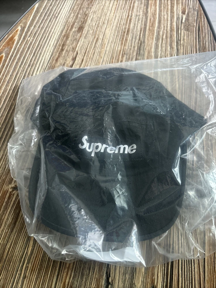 Stay on-trend with the Supreme Washed Chino Twill Camp Cap in classic black. This authentic one-size hat from the SS24 collection is crafted from all-cotton chino twill, ensuring both style and comfort. Perfect for casual occasions, this camp cap features a twill fabric type with the iconic Supreme logo, making it a must-have accessory for any fashion-conscious man.