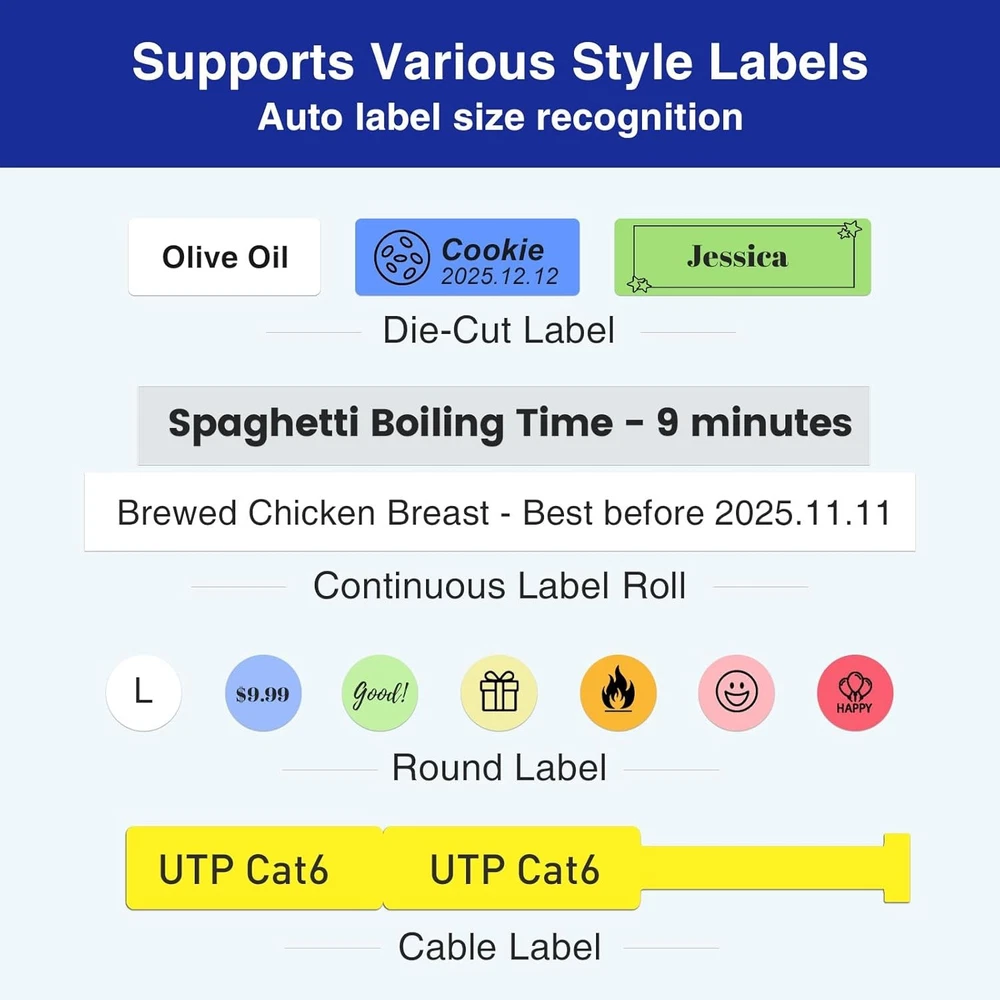 SUPVAN E11 Bluetooth Label Maker Machine with 4 Tapes, Support Keyboard Black Description Features: Fast Keyboard & Smart App Printing: Print directly via the keyboard for quick frequent labeling, or use the Bluetooth App to create customized designs; ideal for home organization, garage tools, pantry items, office files, and school supplies Portable with Rechargeable Battery: Features with 1200 mAh battery provides up to 1 month of use per charge, offering great cost efficiency; lightweight (0.5 lb) and compact (5.7" x 2.9" x 1.3"), ideal for on-the-go labeling Minimal Margin Printing: Prints labels with only 0.2" margin — half the size of others; saves material while improving label efficiency Versatile App Editing Function: Easily customize your labels with 40 fonts, 50 frames, and 450+ icons; create and save your own template locally; all free to use Wide Label Compatibility: Works with continuous labels, fixed-size labels, and cable labels; ideal for long content, batch printing, and cable identification Product Details: Product Dimensions: 5.7"D x 2.9"W x 1.3"H Controller Type: Hand Control Printer Media Size Maximum: 2'' x 3-1/8'' Included Components: Label Maker, USB-C Cable, White Continuous Tape x 4, Manual Display Type: LCD Sheet Size: 1-5/8'' x 1-3/16'' Inches Wattage: 10 Watt-hours Duplex: Duplex Hardware Interface: USB Type C Resolution: 203 dpi Control Method: App Specific Uses For Product: Home/Office/School Item Weight: 8 ounces Item model number: E11 Batteries: 1 AA batteries required. (included) Is Discontinued By Manufacturer: No Manufacturer: SUPVAN Language: English Country of Origin: China Brand: SUPVAN Connectivity Technology: Bluetooth Printing Technology: Thermal Special Feature: Wide Label Compatibility, Rechargeable Battery, Smart App, Minimal Margin, Fast Keyboard Color: Black Model Name: E11 Printer Output: Monochrome Maximum Print Speed (Color): 25.0 Max Printspeed Monochrome: 45 Item Weight: 0.5 Pounds Handling We will ship all orders within 3 business day of payment. Delivery We take pride in offering fast and reliable delivery for your orders! We are committed to getting your products to you as quickly as possible. Generally, we would like to inform you that all orders will be delivered to you within 1-3 business days after processing.However, in some cases, delivery times may vary depending on the buyer's location. Especially in remote or rural areas, the expected delivery time may be extended. In such situations, we do our best to ensure that your order reaches you as quickly as possible.If there are any delays, we will be happy to contact you to explain the situation. Our goal is to enhance your satisfaction with our fast delivery times. We work diligently to ensure that your order arrives safely.Trust us and enjoy our speedy delivery! Return Policy All items qualify for returns within 30 days of receipt. Buyer is responsible for return shipping on any item that is not damaged. Feedback We take our reputation seriously, we buy and sell online, so we understand the value of trust. If you are unsatisfied with your order, please contact us and we will work with you to resolve it to your satisfaction.