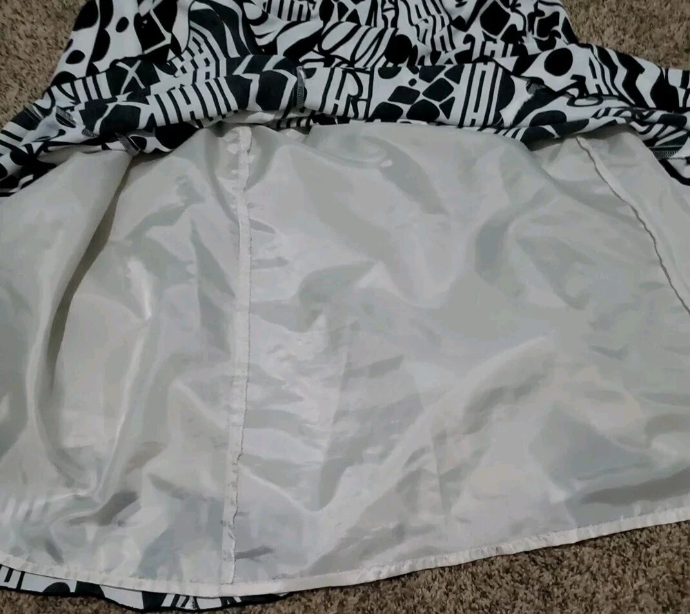 Elevate your wardrobe with this chic black and cream abstract midi skirt from SUSAN GRAVER. Featuring a flattering A-line style and an elastic waist for a comfortable fit, this skirt is perfect for any occasion. The lightweight and stretchy knit fabric make it suitable for all seasons, while the ruffle and layered accents add a touch of bohemian flair. Pair it with your favorite top and accessories for a stylish and modest look that can take you from work to a wedding or a party with ease. Designed with pull-on closure and made of polyester and spandex, this skirt is machine washable for easy care. Invest in this versatile piece from Chico's and elevate your wardrobe today.