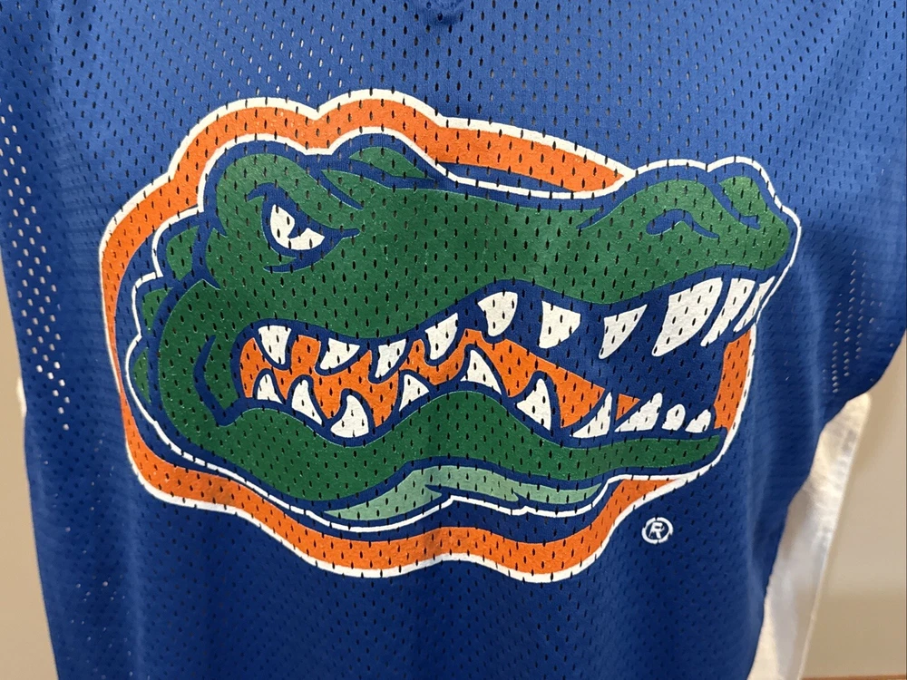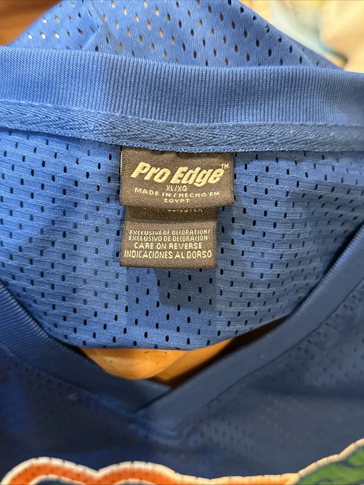 You are purchasing a SUPER COOL Florida Gators sleeveless jersey. Jersey is a men's size X-large. Jersey is blue in color. Very nice screen printed Gators logo on front. Jersey has no other markings on it. Sewn on v-neck elastic collar. Jersey is 100% polyester mesh. Jersey is like new, never worn condition. Made by Pro Edge. VERY NICE jersey for any Gators fan! Buyer pays $5.00 shipping. Shipping combined on multiple lots whenever possible. Thanks for your purchase! Please check out my Ebay store for more great items!