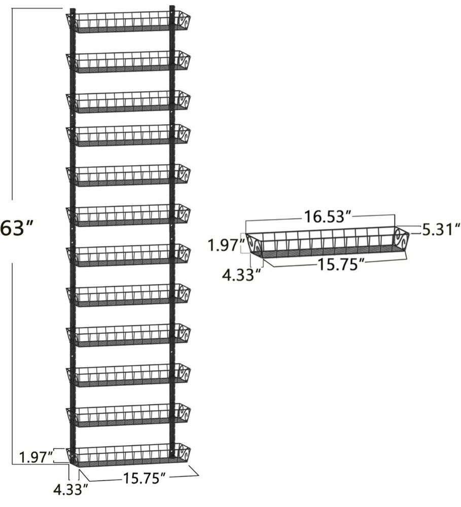 SWOMMOLY Adjustable Wall Mount Spice Rack Organizer, 12-Tier Dual-use (Multi-use) Hanging Spice Shelf Storage for Kitchen Pantry Cabinet Door, Seasoning Holder Organizer, Black #49.4.25