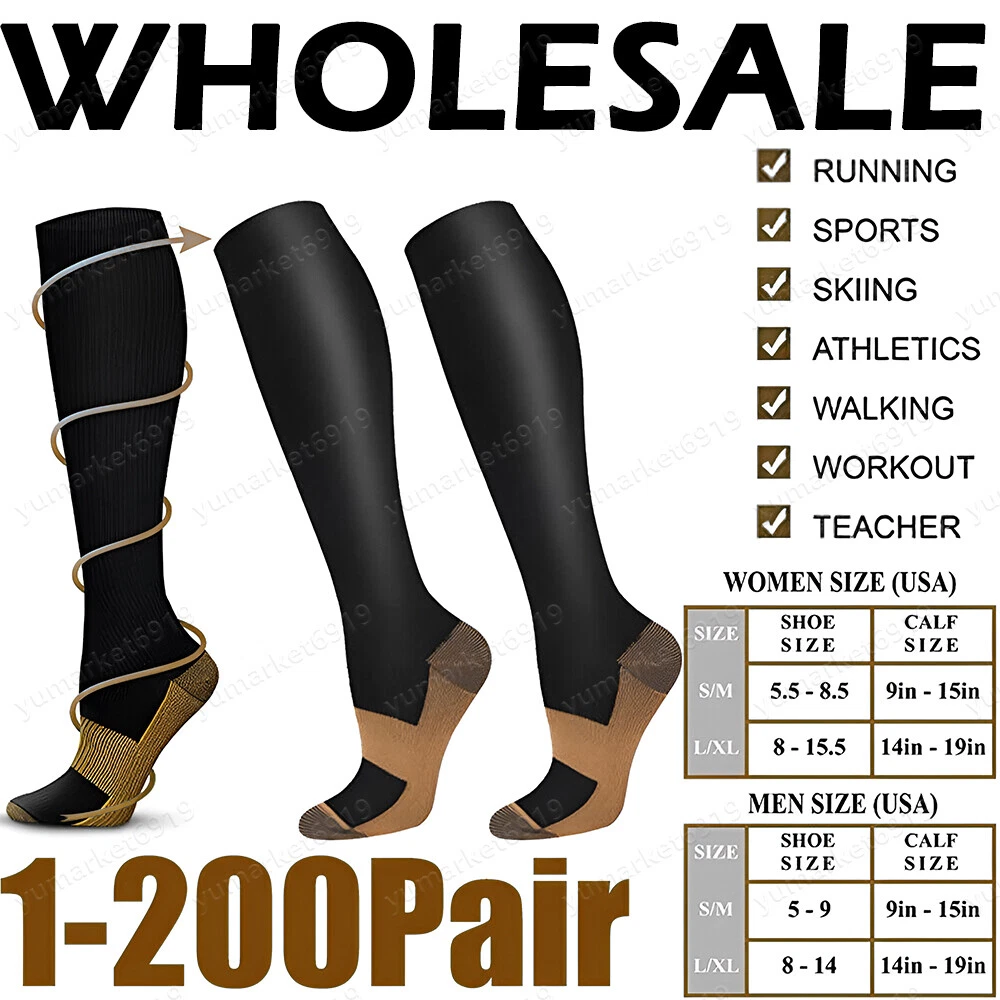 S-XXL Copper Infused Compression Socks 20-30mmHg Pain Relief Mens Womens Lot FEATURES: Skin priendly fabric: This compression socks for men women made of nylon with copper fiber,breathable and comfortable.Which are ergonomically des igned,can keep your feet stay dry all day. Perfect for any season! Better circulation: Copper Compression socks provided with graduated compression 20-30mmhg.They are designed to promote blood circulation and oxygen flow preventing cramping ,fatigue, swelling, and helps in muscle recovery, varicose veins and diabetic. Life partner: Compression stockings is a veritable necessity for anyone working long-hours standing on their feet, or those heavily invested in athletics and a fitness lifestyle. It is great gift to joggers, athletes, workout fanatics, office workers,parent or grandparent, runners, nurses and doctors. Size Information: Small/Medium - Women sizes 6 - 9 and Mens sizes 5 -9 Large/Extra Large - Women sizes 9 - 12 and Mens sizes 9 - 11 XXL - Women sizes 12+ and Mens sizes 11+ PACKAGE INCLUDES: 1-200 Pair Compression Socks Payment Return Warranty Shipping Contact us Payment 1. We accept payment via PayPal. Use PayPal at checkout to pay with credit or debit. 2. Immediate payment is required. Shipping will be arranged within 1 business day once payment is cleared. Return 1. We stand behind our items and offer 60 days warranty. All items are in new and working condition unless specified otherwise elsewhere in the description. 2. All Returns - defective or otherwise - MUST BE PREAUTHORIZED to guarantee refund or exchange. Please contact us to get an authorization and return address. 3. Buyer agrees to pay for the cost of re-shipment for undeliverable or wrong addresses. 4. Buyer is responsible for Return Postage as well as a 20% restocking fee if return/replacement is not a result of our mistake such as wrong item. 5. Replacement or Refund will be made upon receipt of the returned item. Please include tracking number so we can process ASAP. If you do not wish to wait for a replacement, please repurchase the item. 6. ALL REFUNDS will be processed via PayPal. Please double check via PayPal history and transaction for confirmation. PayPal will send it back to whatever you used to pay within 3-5 days. Warranty The warranty shall not apply to the following circumstances: a) Damage caused by undue ware&tear, misuse, improper installation or operation, neglect, accidents. b) Damage caused by natural disaters, flood, fire, lightning or pollution. c) If item was opened, any parts removed or repaired by any unauthorized person. Shipping FREE SAME BUSINESS DAY MONDAY- FRIDAY SHIPPING FROM USA. All orders and payments received before 4PM EST (1PM PST) will be shipped the same business day. All other orders within 1 business day. No shipping on Weekends or US Public Holidays. No responsibility for any custom duty Shipping information will be updated when available. Contact us We have always been trying to provide the best service and reliable products for every customer, however, accident may happen sometimes, please contact us to resolve any issue before leaving a negative feedback.