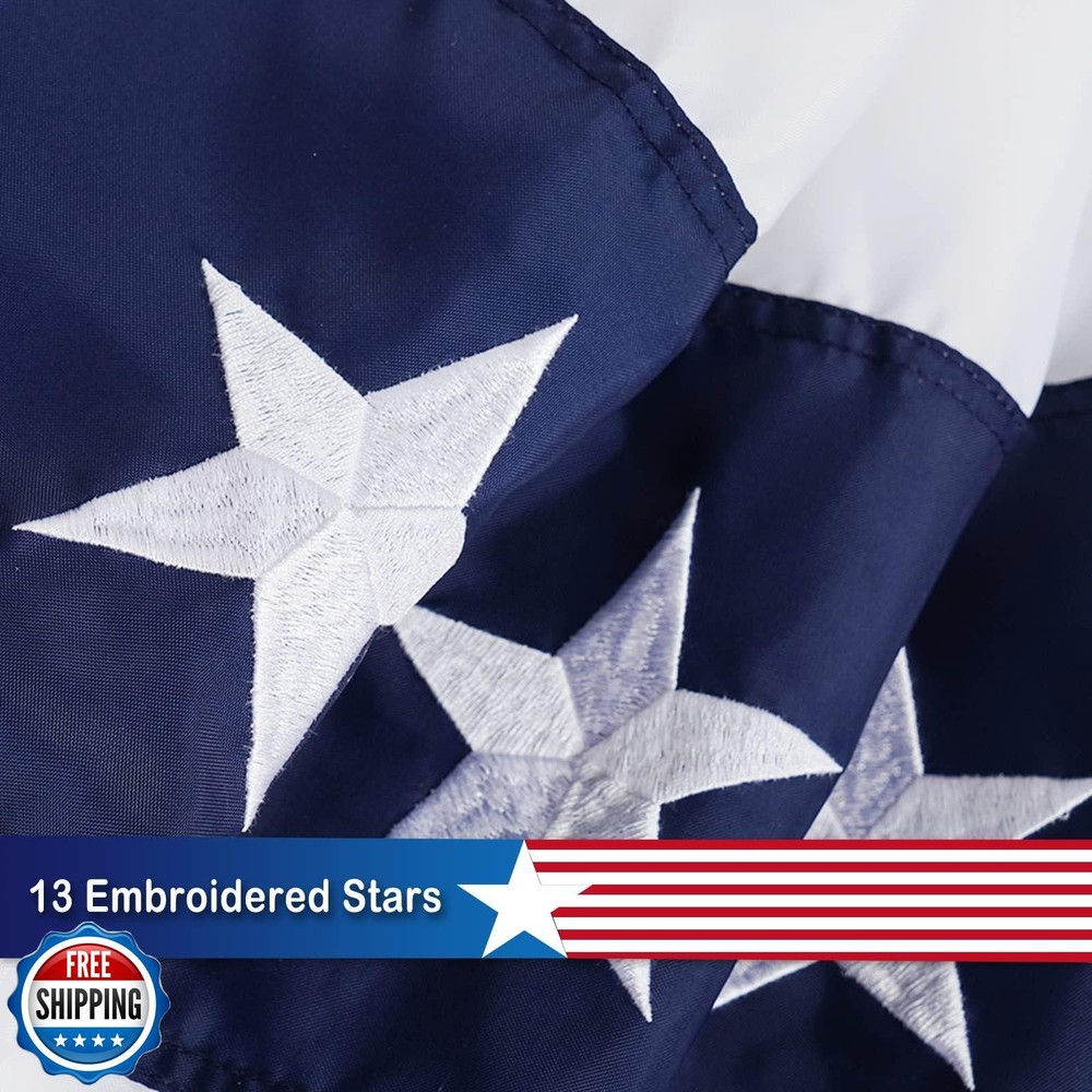 SYII Bunting Flag 3x6 Feet Outdoor (6 PCS), Embroidery Stars American US Bunting Flags with 3 Brass Grommets, Patriotic Half Fan Banner for Fourth of July Decor, 4th of july Decorations Outdoor Features SHOW YOUR PRIDE - Show your national pride by flying this U.S.A half-fan bunting flag, God bless America. LUXURY QUALITY - Made of heavy duty polyester fabric for all weather outdoor use. EMBROIDERED STARS - The stars of this embroidered Pleated Fan flag are sewn with tight white thread embroidery for a more beautiful 3D look. DURABLE - The Patriotic Decorative Flag Head is canvas reinforced with 3 brass grommets and painted with fade resistant paint. PERFECT GIFT - Our Patriotic Half Fan Flag would be the perfect gift for all Americans to show off your pride! Great holiday gift for friends, parents, cops, decorating rooms and garages. Shipping Free & Fast Shipping: We offer free shipping to most of the USA with a normal delivery time of 3-7 days. However, due to the current situation, additional delivery time (up to 3 weeks) may be required for some items. Alternative Carriers: We may use alternative carriers (e.g., USPS, FedEx, UPS) to ensure your package arrives safely and on time. Due to the use of multiple carriers, we are unable to provide a tracking number automatically. Handling Time: Orders are processed and shipped within 1-2 business days of receiving cleared payment. Shipping Restrictions: Shipping to Alaska, Hawaii, Puerto Rico, Guam, and other US territories may incur shipping charges or delivery restrictions. Please contact us before ordering, or your order can be refunded/cancelled. State Restrictions: Certain items may not be shipped to California due to state regulations. Contact for Tracking Updates: If you require tracking updates or have any concerns about the delivery of your order, please feel free to contact us, and we will be happy to assist you. Return Policy 30-Day Hassle-Free Returns: If you are not completely satisfied with your purchase, you can return the item for free within 30 days of receiving it for a full refund or exchange. Easy Return Process: Contact us, and we will provide you with a prepaid return shipping label and detailed instructions. No Restocking Fee: There are no restocking fees for returns. However, the buyer is responsible for return shipping costs if the return is not due to a seller"s error. Refund Processing: Refunds will be processed within 1 business day of receiving the returned item in its original condition. Feedback Your feedback is extremely important to us. We strive to provide the best products and customer service possible. If you are satisfied with your purchase, please take a moment to leave us a positive review. If you have any concerns or issues with your order, please contact us before leaving negative feedback. We are committed to resolving any problems and ensuring your satisfaction. Contact Us If you have any questions or concerns, please feel free to reach out to our customer support team. You can contact us through the eBay messaging system. We are available Monday to Friday, 9:00 am to 5:00 pm EST, and we will do our best to respond to your inquiry within 24 hours. Thank you for supporting our small family business!