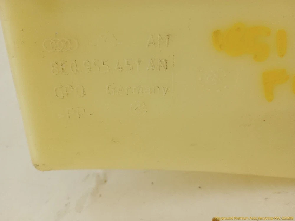 Welcome to Playground - Premium Auto Recycling Feedback [ Add to Favorite Seller me Our eBay STORE New Arrivals All Items Contact Us Most ITEMS SHIPPED WITHIN 2 Business Days Trusted Store customer service is our top priority Product information Saab 9-3 Windshield Wiper Washer Fluid Reservoir Tank Fits 2004-2012 04 05 06 07 Review photos this is your actual part Donor Vehicle: Model: S4 AUDI Year: 2006 Miles: 126000 - 0=N/A or Unknown Stock #: 251851 Video: Go to YouTube and search for: "Playground PAR 251851" Part Detail: Part Placement: Options/Color: Convertible,YS3D Description: Windshield Washer Reservoir Includes Sensor 45R-015056 8E0955451 Inventory ID: 83656 Description Windshield Washer Reservoir Includes Sensor 45R-015056 8E0955451 This part will fit these makes and models with these options AUDI A4 05 lower, w/o 3.2L; Sdn, from VIN 400001 AUDI A4 06-08 lower, Sdn AUDI A4 09 Conv, lower AUDI RS4 07-08 lower AUDI S4 05 lower, Sdn, from VIN 400001 AUDI S4 06-09 lower, Sdn Shipping Playground PAR, LLC ships to US addresses within the continental 48 states. Shipping to Alaska, Hawaii, Puerto Rico, APO, FPO or PO Box addresses and International is available for select parts only. Please contact us through eBay messaging for details and shipping rates for other items. Local Pick-up at our facilities is available. Please contact us prior to your purchase to arrange local pick-up. Please allow up to 10 days for delivery unless your part is included in eBay's Guaranteed Delivery Program. Most areas in the US are within 5 days. If an item arrives damaged, please contact us via eBay messaging within 24 hours for assistance. Warranty Return Policy All parts we sell come with a 3 0 Day Money Back Guarantee unless otherwise stated. The 30 day period starts when the item is delivered. Please contact us through eBay messaging for a Return Merchandise Authorization Number (RMA) before returning any part. We do not cover the cost of labor charges during the installation of your parts. All original shipping costs are non-refundable. Parts must be returned in the same condition as when you received the part. Buyer is responsible for all return shipping costs. Please use the Contact Seller feature if you have questions. Warranty All of our parts (except AS-IS and PARTS ONLY parts) are covered under 60 day warranty. Our warranty policy is below: 60 days starts as of the date of purchase. All requirements of our return policy are part of our warranty policy. This includes the purchaser paying for return shipping. There are no reimbursements for labor, diagnostics, towing, car rental, lost wages, programming or reprogramming. The warranty is for the original purchaser only and is not transferable or assignable. This warranty only covers when parts are used in normal driving conditions and does not cover accidents, abuse, neglect, improper installation, improper maintenance, off-road or use outside of the proper vehicle. Playground may choose to repair, replace or refund the part based on available stock at our discretion. Playground reserves the right to use a repair facility of its choosing to diagnose or perform a warranty claim repair. Parts are not covered for external fluid leaks. We recommend that seals and gaskets be replaced as part of the repair process. Proof of proper lubrication and refilling of components is a requirement for warranty claims. Many electronic modules and components require programming. This process must be followed or the part may not operate correctly, or may be damaged. Proof of programming is required for a warranty claim. Major components are stamped and may have heat sensitive tabs attached to indicated overheating that would void warranty. Warranty covers the base component and none of the other attached parts. We are selling the single part and other parts left attached are there for possible convenience or to protect the part we are selling. These extra attached parts are not covered by any warranty. At no time will the warranty claim ever exceed the original purchase price of the part. Payment Playground PAR, LLC only accepts Ebay Managed Payments for items in our eBay Store. Sales tax will be applied to all orders due to Ebay Policy. Contact Us Please contact us prior to purchasing this part if you have any questions regarding our business policies, the warranties or guaranties we offer or the fitment of this part with your vehicle. Want better photos? Contact us, we can get them to you. We strive to make sure your vehicles repair needs are met the first time you order a part through our store on eBay. To do so, we are happy to verify your vehicles VIN number prior to your purchase, please use the Contact Seller feature within the eBay listing. Â Playground PAR, LLC ships to US addresses within the continental 48 states. Shipping to Alaska, Hawaii, Puerto Rico, APO, FPO or PO Box addresses and International is available for select parts only. Please contact us through eBay messaging for details and shipping rates for other items. Local Pick-up at our facilities is available. Please contact us prior to your purchase to arrange local pick-up. Please allow up to 10 days for delivery unless your part is included in eBay's Guaranteed Delivery Program. Most areas in the US are within 5 days. If an item arrives damaged, please contact us via eBay messaging within 24 hours for assistance. Return Policy All parts we sell come with a 3 0 Day Money Back Guarantee unless otherwise stated. The 30 day period starts when the item is delivered. Please contact us through eBay messaging for a Return Merchandise Authorization Number (RMA) before returning any part. We do not cover the cost of labor charges during the installation of your parts. All original shipping costs are non-refundable. Parts must be returned in the same condition as when you received the part. Buyer is responsible for all return shipping costs. Please use the Contact Seller feature if you have questions. Wa
