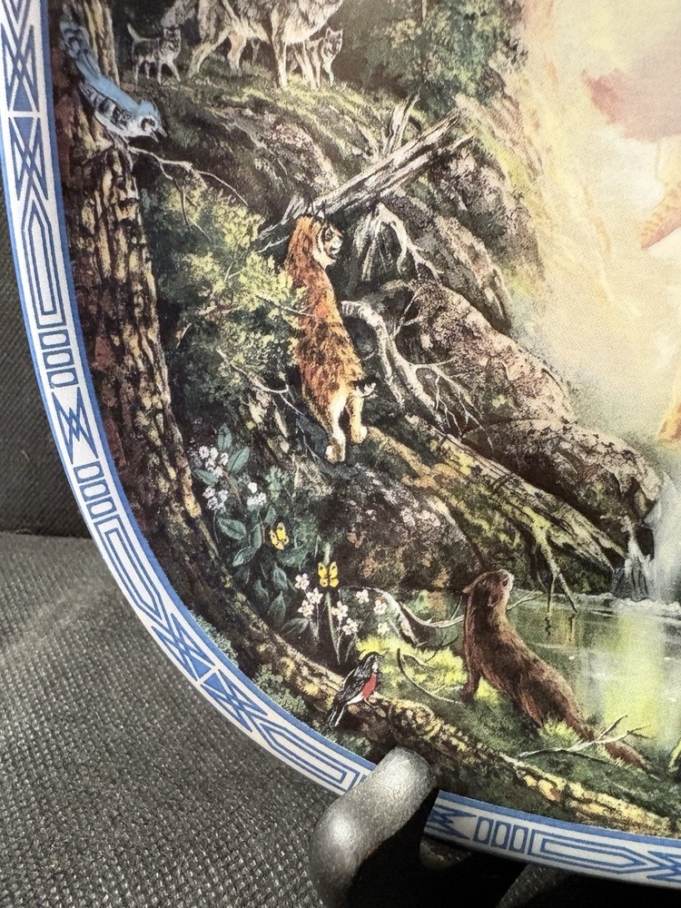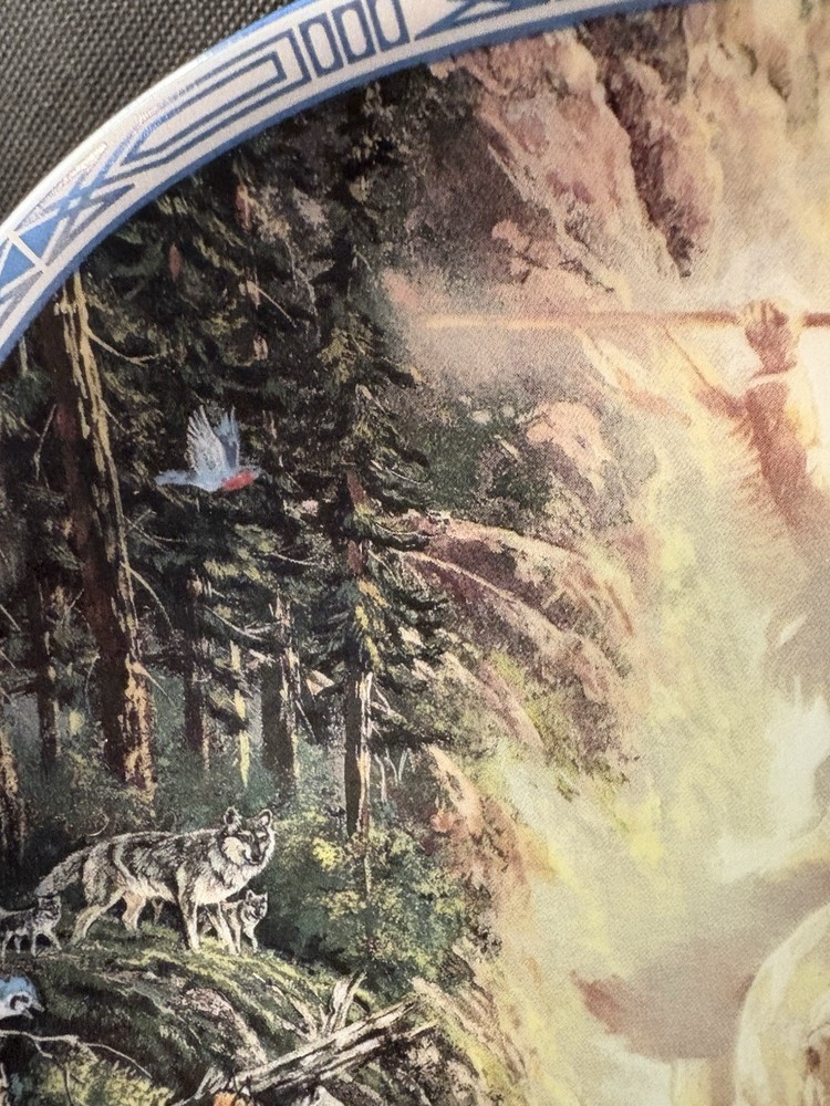 Crafted with precision, the "Springs Messenger-Visions Of The Sacred" collector plate is a testament to the artistry of the late 20th century. With its vibrant multicolor palette and ornate decorative style, this piece is a stand-out example of American art pottery from the 1990s. Produced by Bradex, the plate is made from high-quality porcelain and boasts a unique production style that emphasizes intricate details and fine craftsmanship. Whether displayed as part of a collection or as a standalone piece, it captures the essence of the era and celebrates the cultural richness of its time.