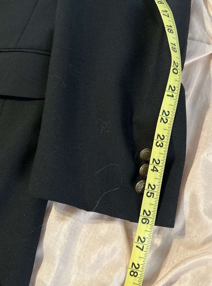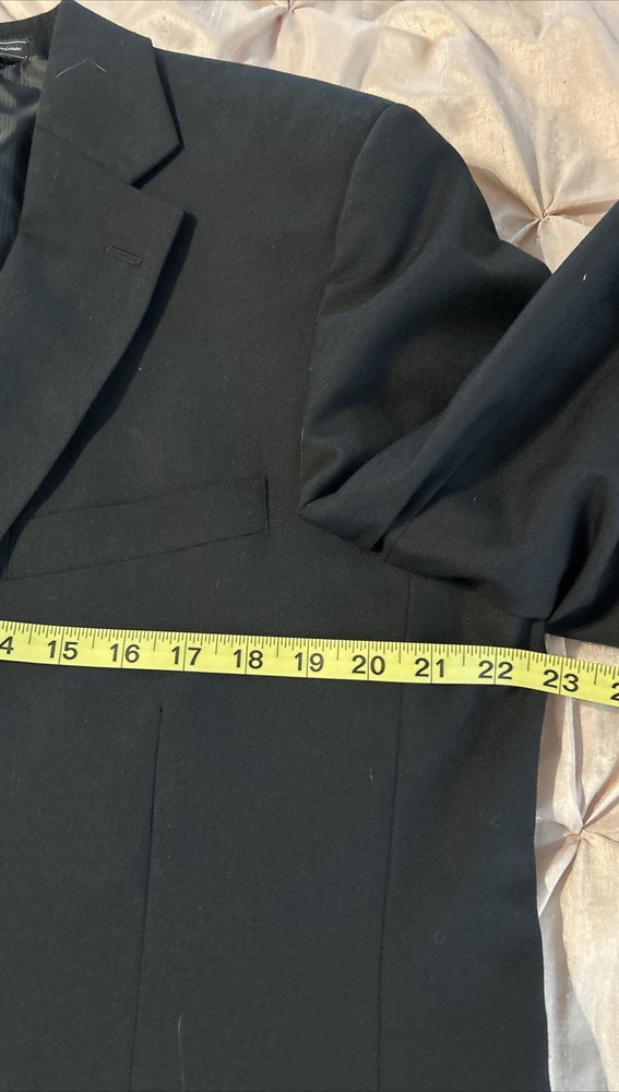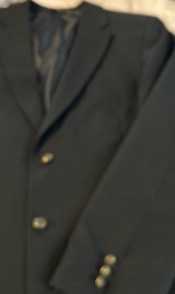 Elevate your style with this Saddlebred black wool sport coat jacket. Designed for the modern man, this blazer features a two-button closure, big and tall size type, and a classic 1 piece style. The jacket is made of high-quality wool material with a wool lining and has a sleek black color that adds a touch of sophistication to any outfit. The blazer has been dry cleaned and ready to wear.