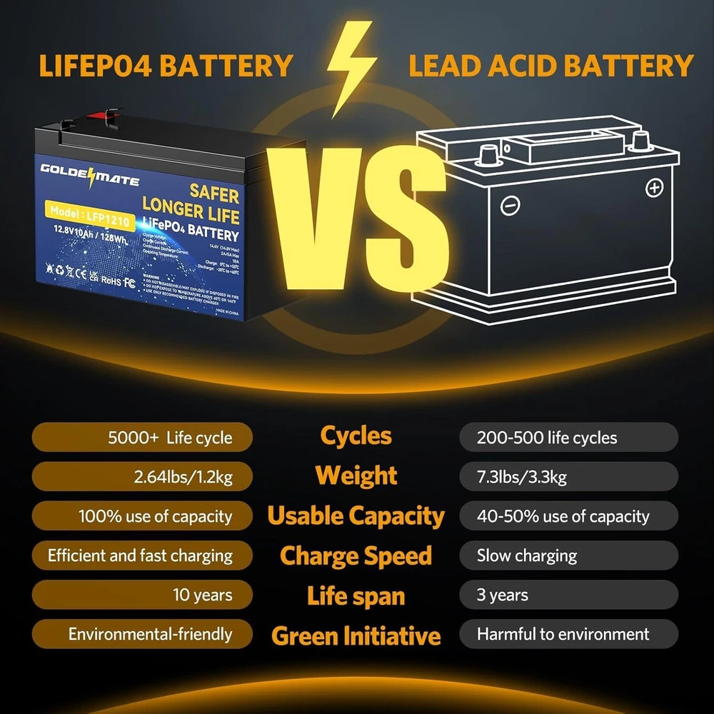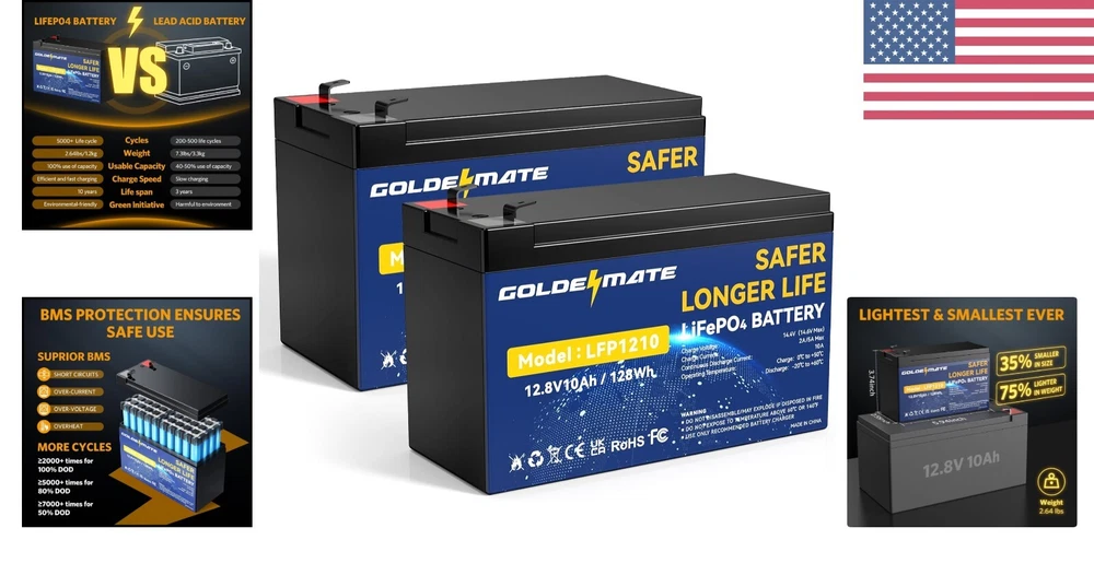 Safe & Lightweight 12V 10Ah Lithium Iron Phosphate Batteries for Critical Power ‹ › ‹ › ‹ › ‹ › ‹ › ‹ › ‹ › ‹ › ‹ › Safe & Lightweight 12V 10Ah Lithium Iron Phosphate Battery High-Capacity Power Reliable Performance: With a nominal voltage of 12.8V and a robust 10Ah capacity, our battery is perfect for high-demand applications such as solar-powered lights, electric tools, and fishing equipment. Dependable Usage: Get the performance you need, when you need it, ensuring that your adventures aren't interrupted. Long-Life Cycle Unmatched Longevity: Enjoy a remarkable lifespan of over 5000 cycles, far outlasting traditional lead-acid batteries. Cost-Effective: Ideal for solar lighting industries and portable electronics—an investment that pays off with years of reliable performance. Lightweight & Compact Design Dimensions: Approximately 5.9" x 2.5" x 3.7" and weighs only about 2.6 lbs., making it ultra-portable. Versatile Use: Fits seamlessly into a variety of devices, perfect for mobile lighting solutions, electric toys, and handheld vacuums. Low Self-Discharge Rate Stay Powered: Ultra-low self-discharge rate means your devices retain power for extended periods. Essential for Emergencies: An excellent choice for emergency LED lights, Bluetooth speakers, and other critical applications. Safe & Reliable Technology Engineered Safety: LiFePO4 technology minimizes risks compared to traditional lithium-ion batteries. Power-Demanding Activities: Ideal for electric spray applicators and high-power LED flashlights, ensuring safety without compromising performance. Why Choose Our 12V 10Ah Lithium Iron Phosphate Battery? If you're seeking a powerful, lightweight, and safe battery option, look no further. Our 12V 10Ah LiFePO4 battery delivers exceptional performance and reliability for a wide array of high-demand applications. With its long life cycle and low self-discharge rate, this battery is designed to keep your devices running smoothly for years to come. Elevate your power solution today with our Safe & Lightweight 12V 10Ah Lithium Iron Phosphate Battery - your reliable partner for all your power needs! Shipping Free & Fast Shipping - We offer free shipping to most of the USA with a normal delivery time of 3-7 days. However, due to the current situation, additional delivery time (up to 3 weeks) may be required for some items. Alternative Carriers - We may use alternative carriers (e.g. USPS, FedEx, UPS, etc.) to ensure your package arrives safely and on time. Due to the use of multiple carriers, we are unable to provide a tracking number automatically. Handling Time - Orders are processed and shipped within 1-2 business days of receiving cleared payment. Shipping Restrictions - Shipping to Alaska, Hawaii, Puerto Rico, Guam, and other US territories may incur shipping charges or delivery restrictions. Please contact us before ordering, or your order can be refunded/cancelled. State Restrictions - There may be restrictions based on your state of purchase. For example, certain items may not be shipped to California due to state regulations. Contact for Tracking Updates - If you require tracking updates or have any concerns about the delivery of your order, please feel free to contact us, and we will be happy to assist you. Return 30-Day Hassle-Free Returns - We want you to be completely satisfied with your purchase. If you are not, you can return the item within 30 days of receiving it for a full refund or exchange. Easy Return Process - To start a return, simply contact us and we will provide you with a prepaid return shipping label and detailed instructions. Restocking Fee - There are no restocking fees for returns. However, the buyer is responsible for return shipping costs if the return is not due to a seller's error. Refund Processing Time - Refunds will be processed within 5 business days of receiving the returned item in its original condition. Payment We accept all major credit cards, PayPal, and Apple Pay for your convenience. Your payment information is secure and encrypted to ensure a safe and seamless transaction. Please complete your payment within 3 days of purchase to avoid any delays in shipping. Feedback Your feedback is extremely important to us. We strive to provide the best products and customer service possible. If you are satisfied with your purchase, please take a moment to leave us a positive review. If you have any concerns or issues with your order, please contact us before leaving negative feedback. We are committed to resolving any problems and ensuring your satisfaction. Contact Us If you have any questions or concerns, please feel free to reach out to our customer support team. You can contact us through the eBay messaging system. We are available Monday to Friday, 9:00 am to 5:00 pm EST, and we will do our best to respond to your inquiry within 24 hours. Buy it now and enjoy a pleasant shopping experience! UPC: Not Set Unit Quantity: 2 Expiration Date: LiFePO4 Lithium Battery Application: High Drain Devices,Low Drain Devices,Solar/Wind Devices Brand: Unbranded Type: 12 V Block Chemical Composition: Lithium Amp Hours: 10 Ah Voltage: 12 V Battery Size: 12 V MPN: Not Set Unit Type: lb Country/Region of Manufacture: Not Set Manufacturer Warranty: Not Set