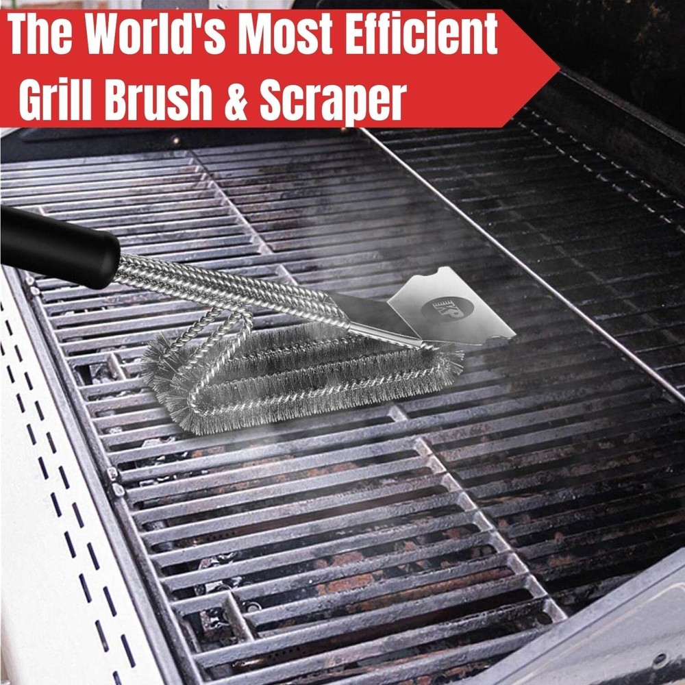 Not About The Cleaning, All About The Food- Focus on simply enjoying the mouthwatering goodies you just grilled, and less time scraping the grill grates.Our bbq grill cleaner set is complete with bristle free grill brush and scraper for safe & effective cleaning, and Heavy-Duty, BBQ Grill mat that withstand temps of up to 500 Fahrenheit. Our grilling accessories brush is compatible with Weber , Char Broil King , Japanese, big green egg , gas & charcoal grills /other grill or smoker type. Safe & Effective Grill Cleaning- Our Grill cleaning Brush features 3x extra thick,triple helix that cleans up to 5x times faster than a regular grill cleaner brush, 17” handle for extra safety & full control, stainless steel grill scraper for easy grease removal, a bristle-free design for NO lose wires, and metal wire as well as unique scraper edges on the brush sides for easy rescue cleaning in between the grill bars. This kit is the ideal grill brush for gas grill & grilling gift for men All Clean? Let's Keep It That Way- With our reusable BBQ Mat you’ll be able to perfectly cook all your meats and keep your grill grease-free, with zero cleaning needed once you’re done. Our black grill mat is heat resistant up to 500 F, sport a PTFE fiberglass coating, are non-stick & dishwasher safe, are 15.7”x13” big and 0.2mm thick so they cover your entire grilling surface, for zero mess. Perfect pair with grill scrubber. A must-have tool for an outdoor BBQ grilling lover Simply Put, An Unbeatable Deal- We tried to create the most value-packed deal on Amazon’s barbecue grill accessories category, and to make things even better, with our bbq grill brush and scraper & grill mat BBQ accessories set, you also get 2x bonus Ebooks chock-full of delicious recipes that you can follow to impress friends and family (after you showed them your barbecue brush / grill brush bristle free ). Value-Packed & Risk-Free- We want to create the perfect experience from the moment you click Add to Cart and join our family. That’s why, to eliminate all risk from your purchase, we fully back our BBQ Brush + BBQ Mat set, with our LIFETIME Warranty!