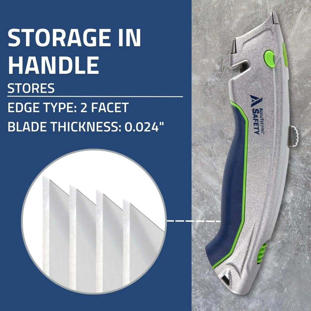 The Safety A1 Dual Function Retractable delivers diverse functionality in a high cut performance tool. Features Accutec carbon steel blade for the cut you want and can count on. One hand, rubber grip for control, operation with external cord cutter. Dual function with standard utility (3 cut depth option) or auto-retractable. The easy blade exchange, with additional blade storage tool is ready to cut through light corrugate, tape, light cord / rope, and many other types of materials. The durable zinc bodied tool fits easily into your pocket for easy deployment and use. It can withstand the day in / day out grind, helping you get the job done. Performance You Can Trust - AccuTec knife has dual function with standard utility (3 cut depth option) or auto-retractable which can delivers a satisfying and exceptional result. Trusted Durability - The durable zinc bodied tool fits easily into your pocket for easy deployment and use. It can withstand the day in / day out grind, helping you get the job done. Easy to Use - The easy blade exchange, with additional blade storage tool is ready to cut through light corrugate, tape, light cord / rope, and many other types of materials. Safety Features - Features AccuTec carbon steel blade with adjustable cut depth for the cut you want and can count on. It has a rubber grip for control and safety use. Tradition of Excellence - Our 145 years of experience have made us masters of engineering blades that are built to last. You can trust these blades to provide the satisfying results.