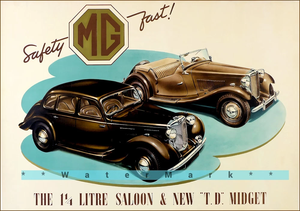 MG Car Safety Fast 1950 Featuring the MG 1 1/4 litre Salon and the TD Midget Vintage Poster Print Retro Style Restored Art We offer Free US Postage or Reduced Postage for Canada & Worldwide. No charges for additional prints worldwide. ***These are not framed or stretched or mounted NOTE:**Delivery dates shown are only "Suggested" Order Early To Avoid Post Delay Dramas **Read Please: The print looks best with a nice mat (passe - partout or passepartout ) and frame. These prints are the exact proportion as the original and will not be stretched to fit the paper or canvas...this would cause a distorted print The image will be the exact aspect ratio as per the original poster, so there might be more white on the top and bottom, or side to side. Options available..use the drop-down menu * Watermark will not be on your image. *Cloth Canvas an artist canvas used also in museums and art galleries *Photo Gloss Paper is a high-quality Professional Photo paper *Matte Photo Paper is a great solution if you do not want a Gloss, this paper is great with colors *Luster Photo Paper this photo paper is neither glossy or mat. Glossy paper has a smooth texture, luster paper is slightly textured. This option is a good choice for something in between Metallic, Photo Gloss and Matte *Metallic Pearlescent Photo Paper is a very high-quality paper with a Pearlescent sheen, a glossy finish, and unique metallic appearance, these prints have extra visual interest and depth. This paper uses a combination of film laminate layers that produce striking, dimensional, lasting images on an ultra-bright background. The effect is sometimes described as "chrome on paper." This is NOT a metal plaque, it is a photo paper This poster print will be shipped in a sturdy container. We will ship usually within 24 business hours of payment, except for weekends or US Holidays If there is a question, please do contact me The delivery date given on the listing page page is not a guarantee by the post All is done to send you the best quality poster image. Don't forget to check out the Sales. There is a great Buy 3 Get 1 Free Offer!! Shipped with no extra postage..Worldwide! There are a variety of reasons why the images on your monitors don't match each other. The simplest is that each monitor is different; even monitors with exactly the same model won't have colors that match up perfectly