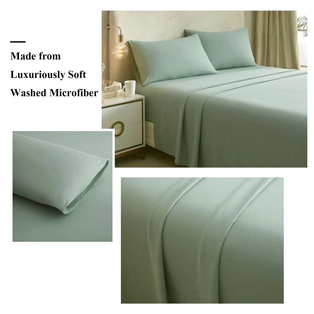 【EXTRA SOFT】Our queen sheet set was made of 100% washed microfiber material,which offers strength and durability with exceptional softness.Experience the ultimate comfort and soft touch with our bed sheets, sleep better and wake up each morning feeling refreshed,this washed microfiber sheets is tronger than cotton with ultra-tight knit,these luxury sage green bed sheets won't rip or tear after washing.keep you cool,comfortable,and breathable in all seasons. 【4 PIECE SHEET SET 】Exra Soft Queen Size Bed Sheets Set 4 Piece - 1 flat sheet 90"x102", 1 fitted sheet 60"x80"x16",2 pillowcases 20"x30".Deep pockets that fit mattresses up to 16" deep with elastic around the fitted sheet.The all-around elastic on our fitted sheets will cover your deep luxurious mattress and any toppers easily, no matter how much you toss and turn. 【GIFT IEDA 】: Ultra Soft Luxury Hotel Quality Bed Sheets is Best for Bedroon,Guest Toom,Kids Room, RV, vacation home,College Dorm.Great Idea for Women,Men,Teens,Boys,Girls,Toddlers,Nursery,Friend,Son,Daughter,Family Great GIFT IEDA for Mothers Day,Fathers Day,Christmas,New Year,Birthday,Holiday ,Valentine’s Day or Special Days 【EASY CARE】:Queen sheets set is machine washable.Wash on a gentle cycle with cold water,tumble-dry them on low heat.Quick ironing or steam clean when needed.Visiting the store, find out your favorite bedding sets. EASY FIT :4 Piece Sheet & Pillowcase Sets decorate your home,for any reason, if you don’t love your queen size bed sheets, please contact us