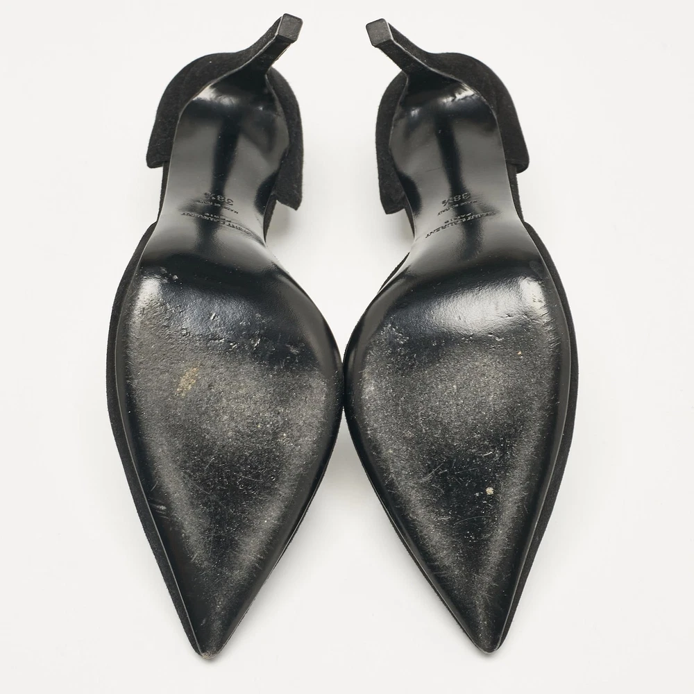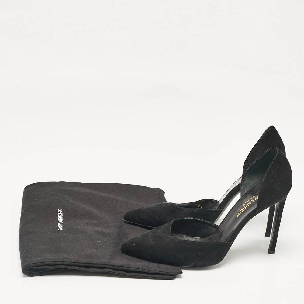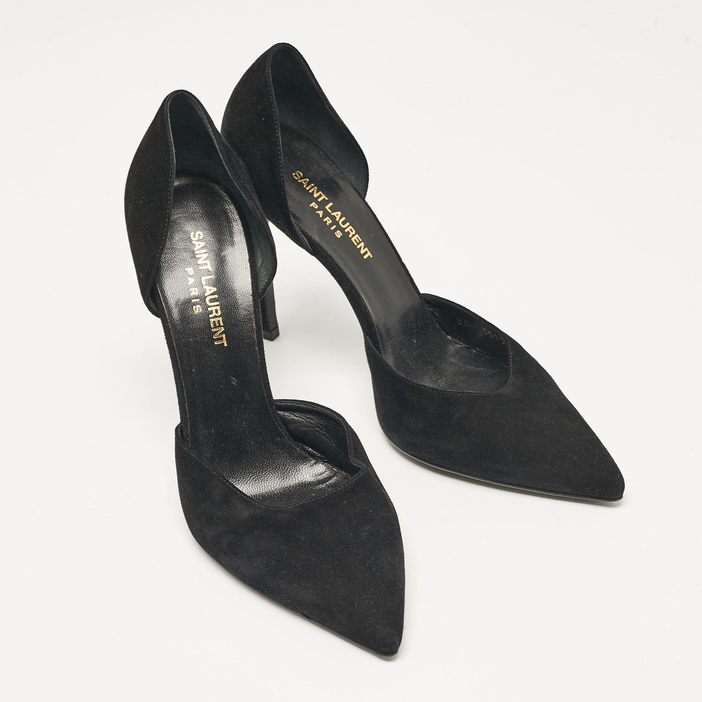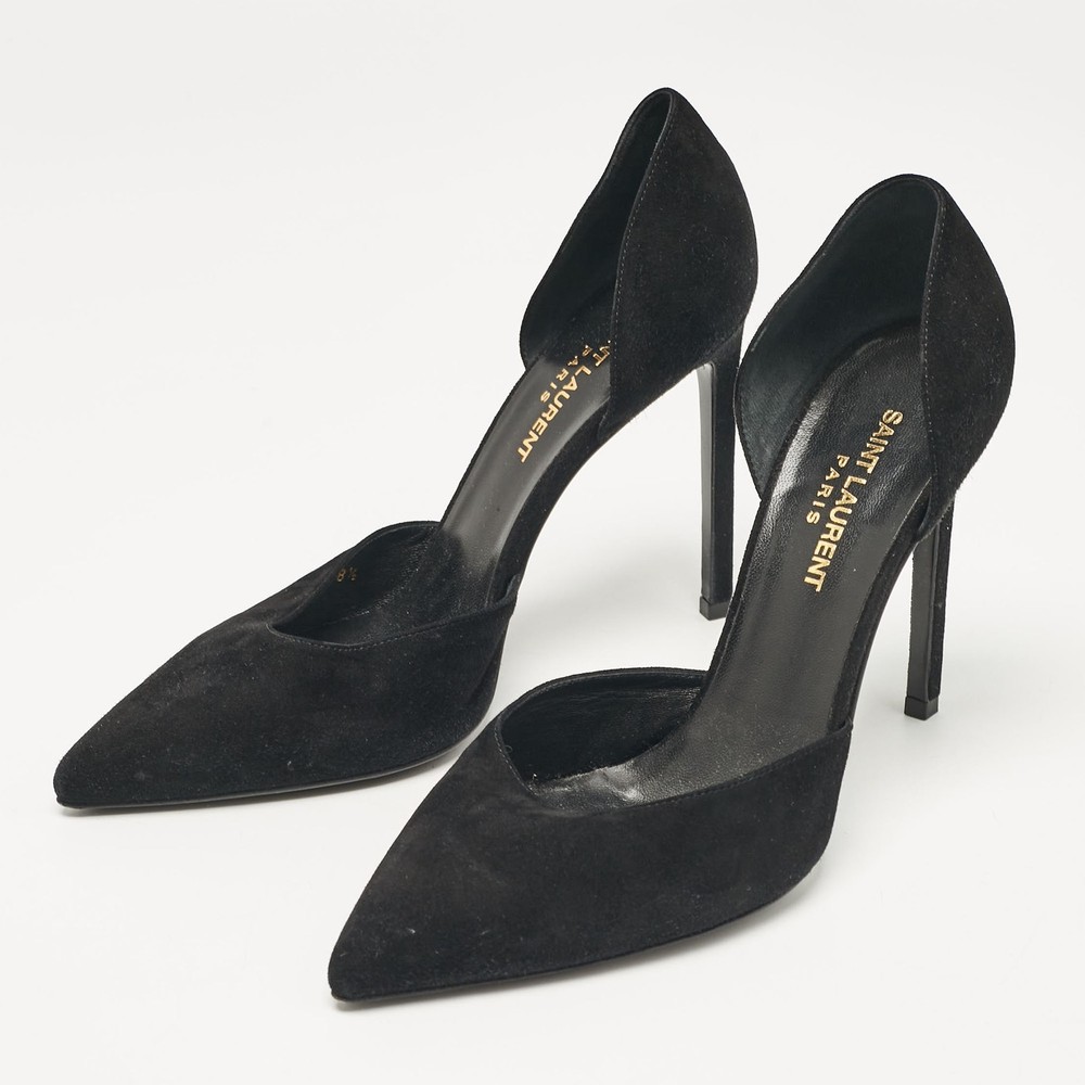 Make a chic style statement with these designer pumps. They showcase sturdy heels and durable soles, perfect for your fashionable outingsCertified by The Luxury Closet - This item has gone through a detailed authentication process overseen by our experts. We offer a lifetime guarantee of authenticity on all our items. Import duties, taxes and charges are not included in the item price. These charges are the buyers responsibility. Please check with your country’s customs office to determine what these additional cost will be prior to buying. Our eBay Store About Us Contact Us Add to Favorite Sellers Saint Laurent Black Suede D'orsay Pumps Size 38.5 $151.8 Make a chic style statement with these designer pumps. They showcase sturdy heels and durable soles, perfect for your fashionable outings Product Details Brand Color Black Dimensions Material Suede Size 38.5 Outsole Width Outsole Length Heel Height Includes Original Dustbag Certified by The Luxury Closet This item has gone through a detailed authentication process overseen by our experts. We offer a lifetime guarantee of authenticity on all our items. How We Check The in-house team of experts at The Luxury Closet is highly trained to verify the authenticity and the condition of the luxury products. They ensure that only 100% authentic items are put on sale.The evaluation process is unique with its own mix of assessment criteria and differs according to the category. Each item is evaluated based on the following combination of hallmarks, hardware, stitching, symmetry, material, craftsmanship, stamping, codes, hologram stickers, and packaging. Our authenticators also check if the items have been modified or amended (e.g., aftermarket diamonds, replaced batteries, repaired bags, etc.) International Buyers Import duties, taxes and charges are not included in the item price. These charges are the buyers responsibility. Please check with your country’s customs office to determine what these additional cost will be prior to buying.