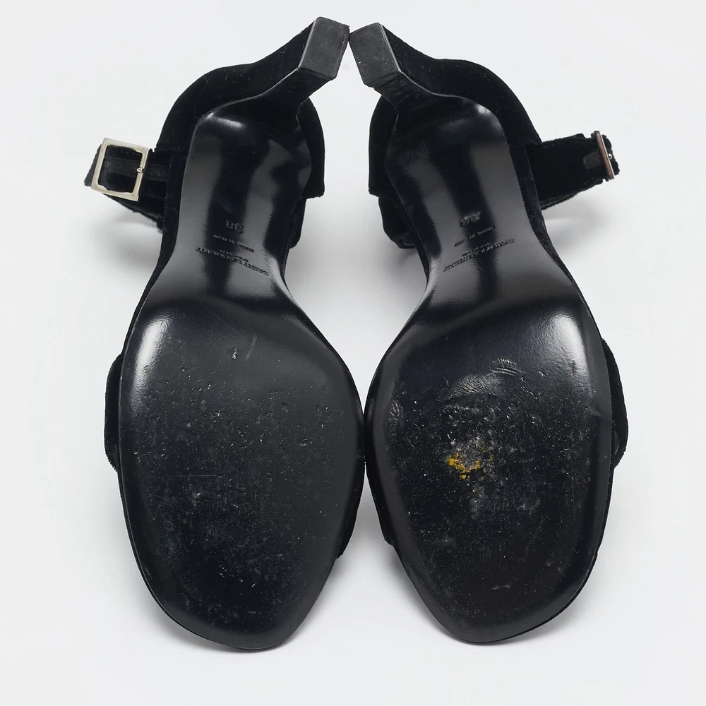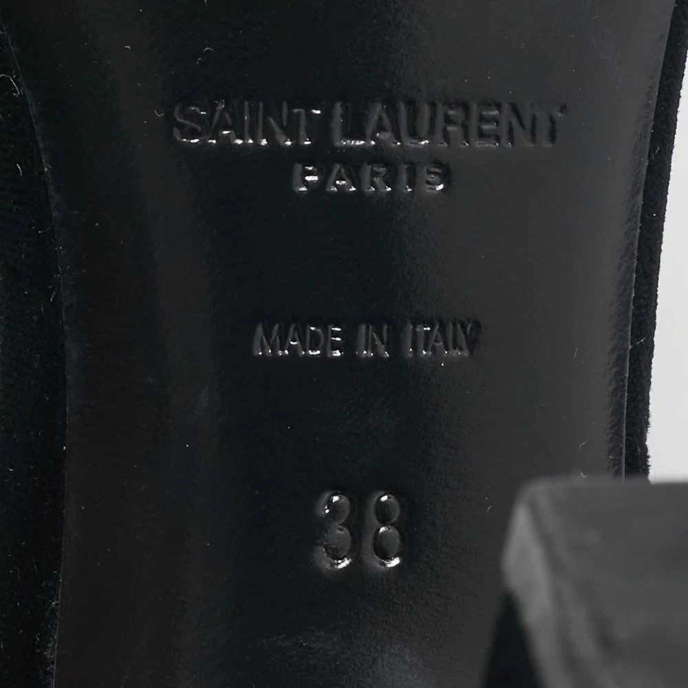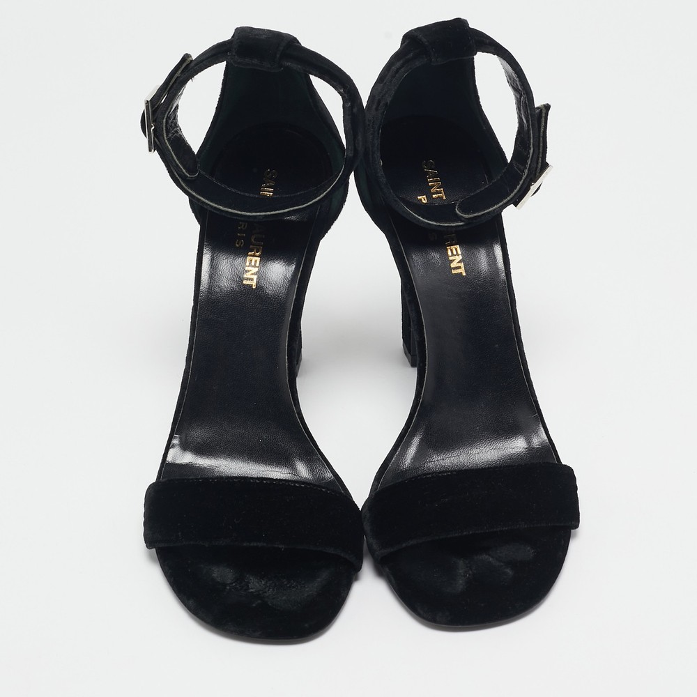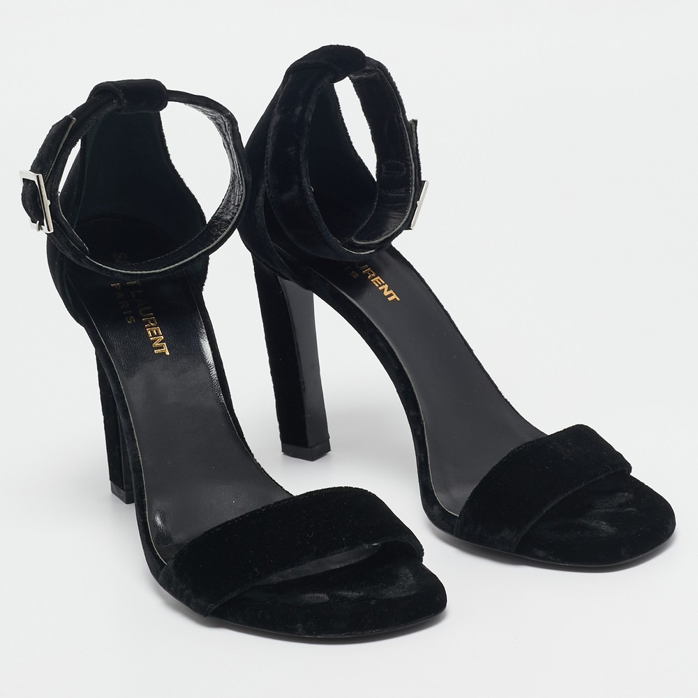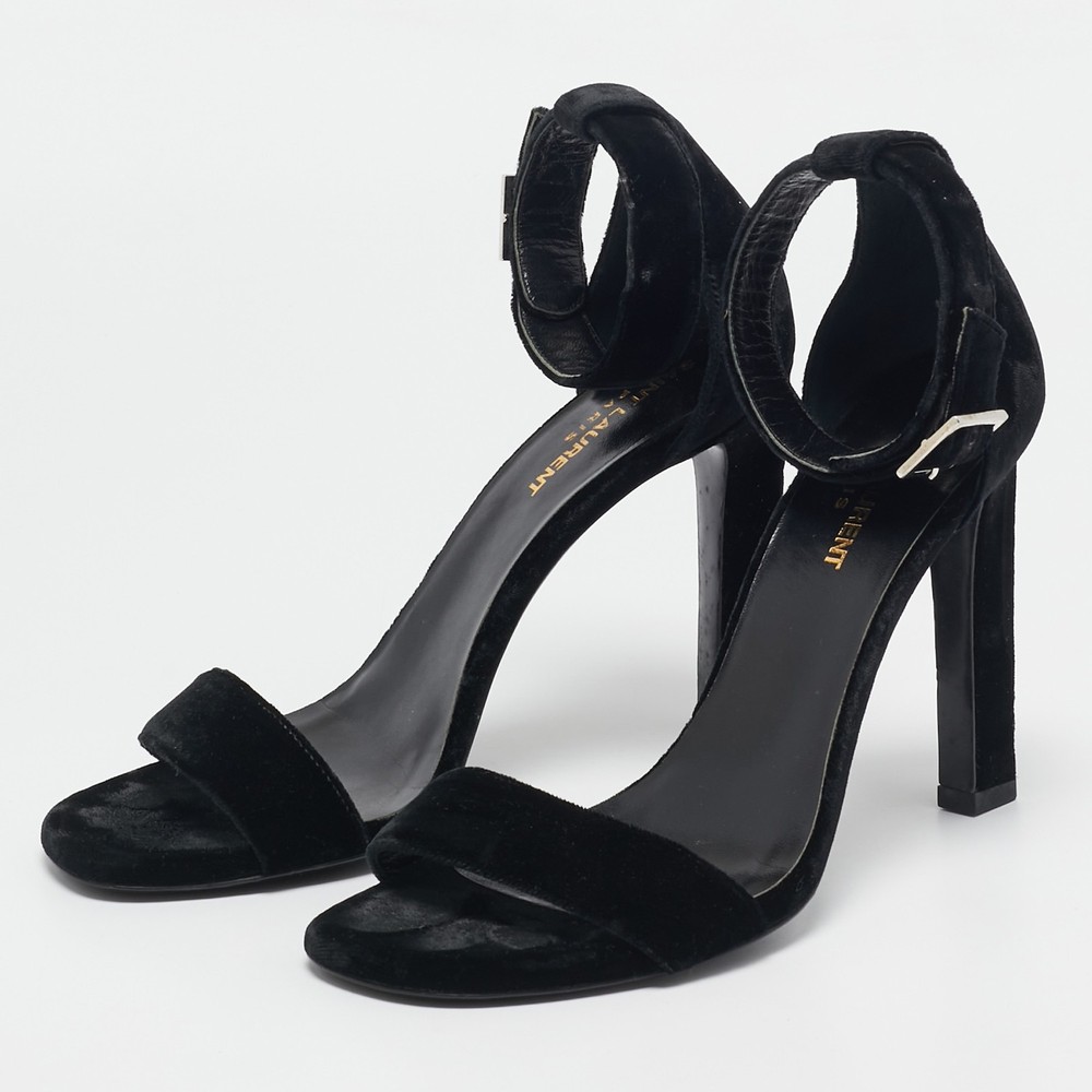 Timeless and elegant, Saint Laurent’s Grace sandals are crafted from sumptuous black velvet with a sleek, minimalist design. Featuring an adjustable ankle strap and slender stiletto heel, they’re ideal for sophisticated evenings.Certified by The Luxury Closet - This item has gone through a detailed authentication process overseen by our experts. We offer a lifetime guarantee of authenticity on all our items. Import duties, taxes and charges are not included in the item price. These charges are the buyers responsibility. Please check with your country’s customs office to determine what these additional cost will be prior to buying. Our eBay Store About Us Contact Us Add to Favorite Sellers Saint Laurent Black Velvet Grace Sandals Size 38 $409.2 Timeless and elegant, Saint Laurent’s Grace sandals are crafted from sumptuous black velvet with a sleek, minimalist design. Featuring an adjustable ankle strap and slender stiletto heel, they’re ideal for sophisticated evenings. Product Details Brand Color Black Dimensions Material Velvet Size 38 Outsole Width 8.5 cm Outsole Length 22 cm Heel Height 11 cm Includes The Luxury Closet Packaging Certified by The Luxury Closet This item has gone through a detailed authentication process overseen by our experts. We offer a lifetime guarantee of authenticity on all our items. How We Check The in-house team of experts at The Luxury Closet is highly trained to verify the authenticity and the condition of the luxury products. They ensure that only 100% authentic items are put on sale.The evaluation process is unique with its own mix of assessment criteria and differs according to the category. Each item is evaluated based on the following combination of hallmarks, hardware, stitching, symmetry, material, craftsmanship, stamping, codes, hologram stickers, and packaging. Our authenticators also check if the items have been modified or amended (e.g., aftermarket diamonds, replaced batteries, repaired bags, etc.) International Buyers Import duties, taxes and charges are not included in the item price. These charges are the buyers responsibility. Please check with your country’s customs office to determine what these additional cost will be prior to buying.