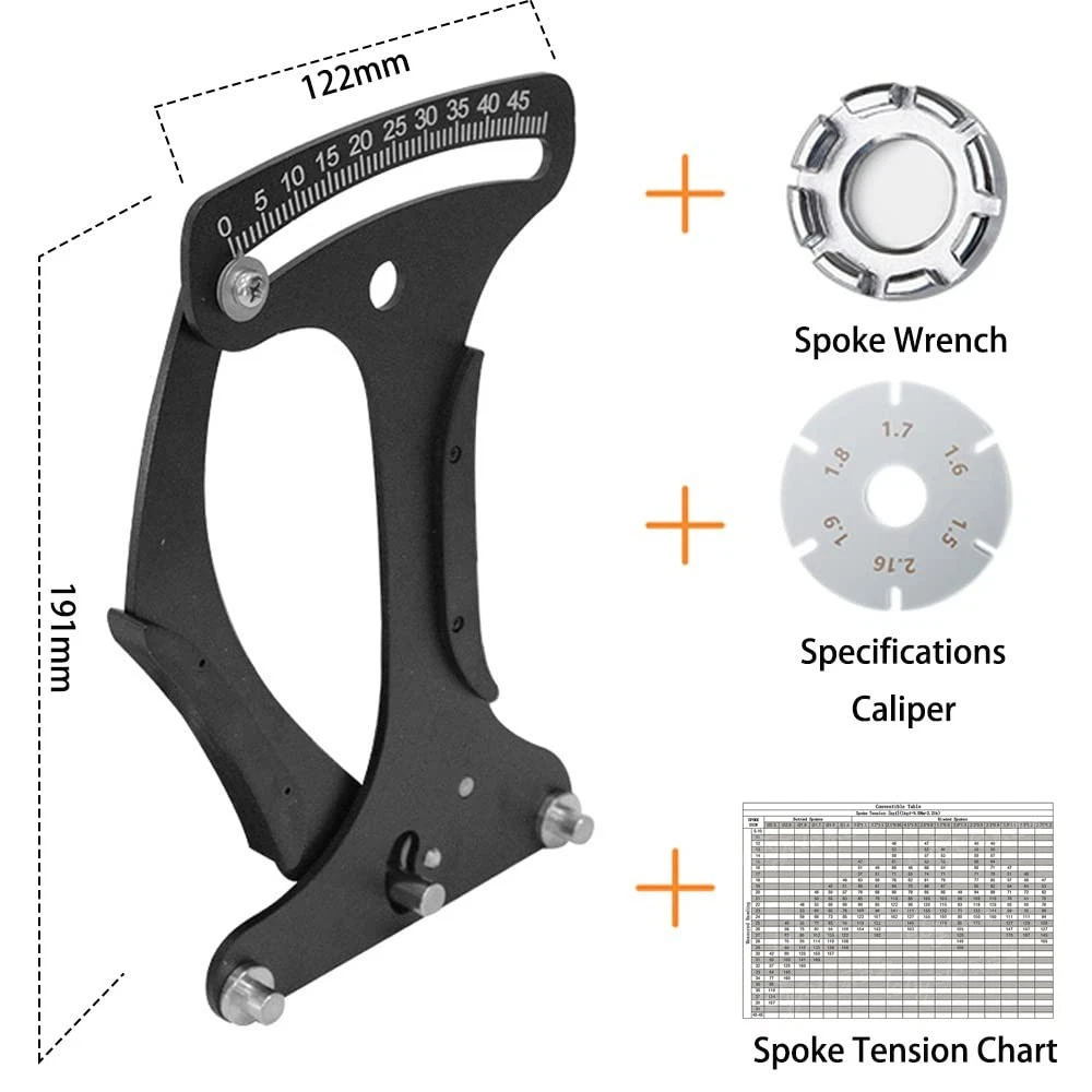 Pro Bike Park Tool Spoke Tension Meter Gauge with Wheel Checker Chart