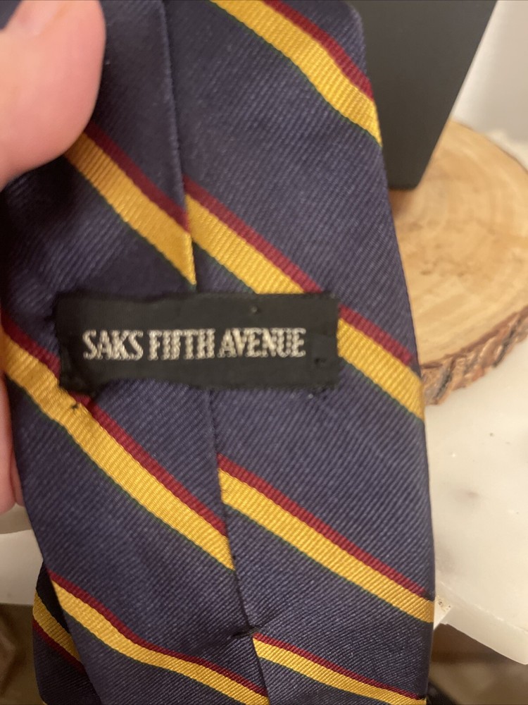 This Saks Fifth Avenue men's tie features a multicolor striped pattern, giving it an elegant and sophisticated look. Made of 100% silk in a silk blend fabric, this classic length tie is designed with a width of 3.00 inches and a length of 60 inches. It is a stylish accessory that exudes a sense of elegance and class.