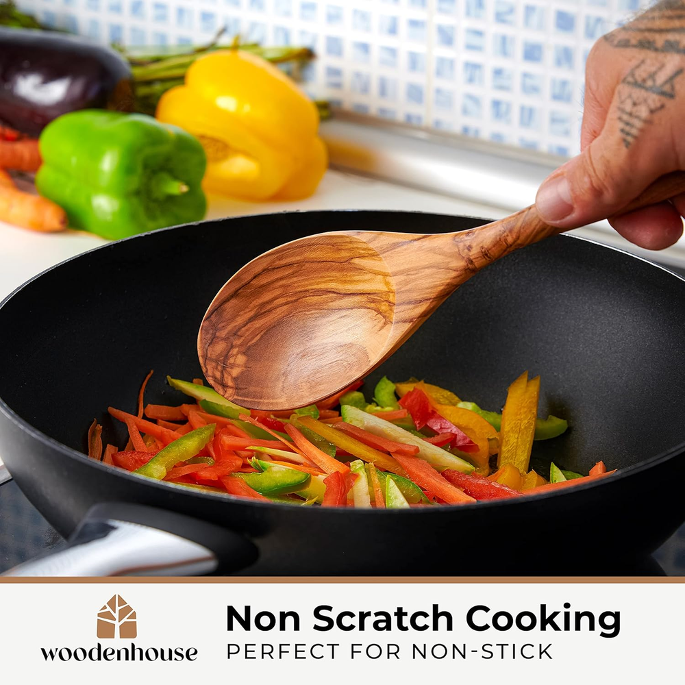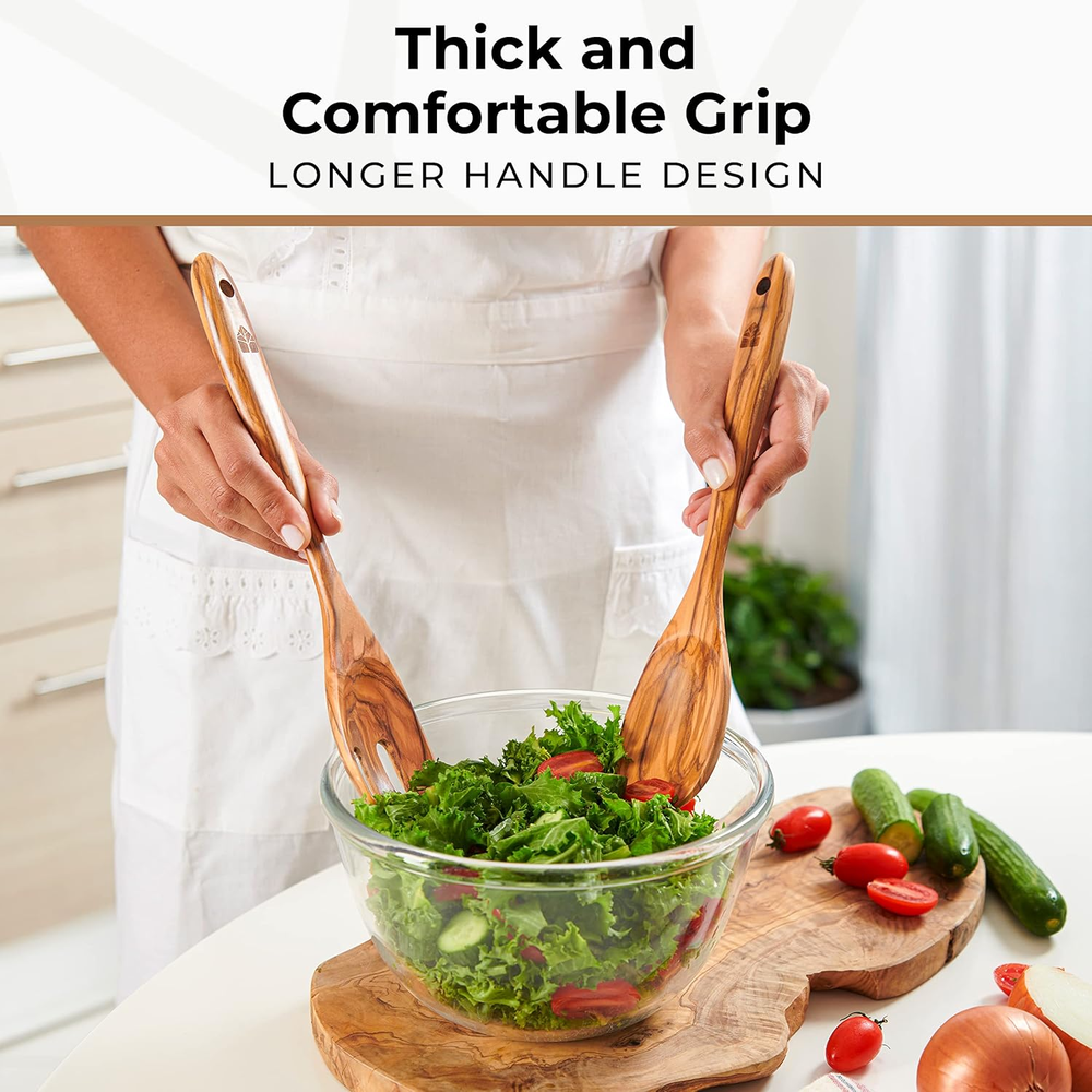 Salad Tongs for Serving, Spoon Salad Utensils Set from Olive Wood, 12 Inches Woo