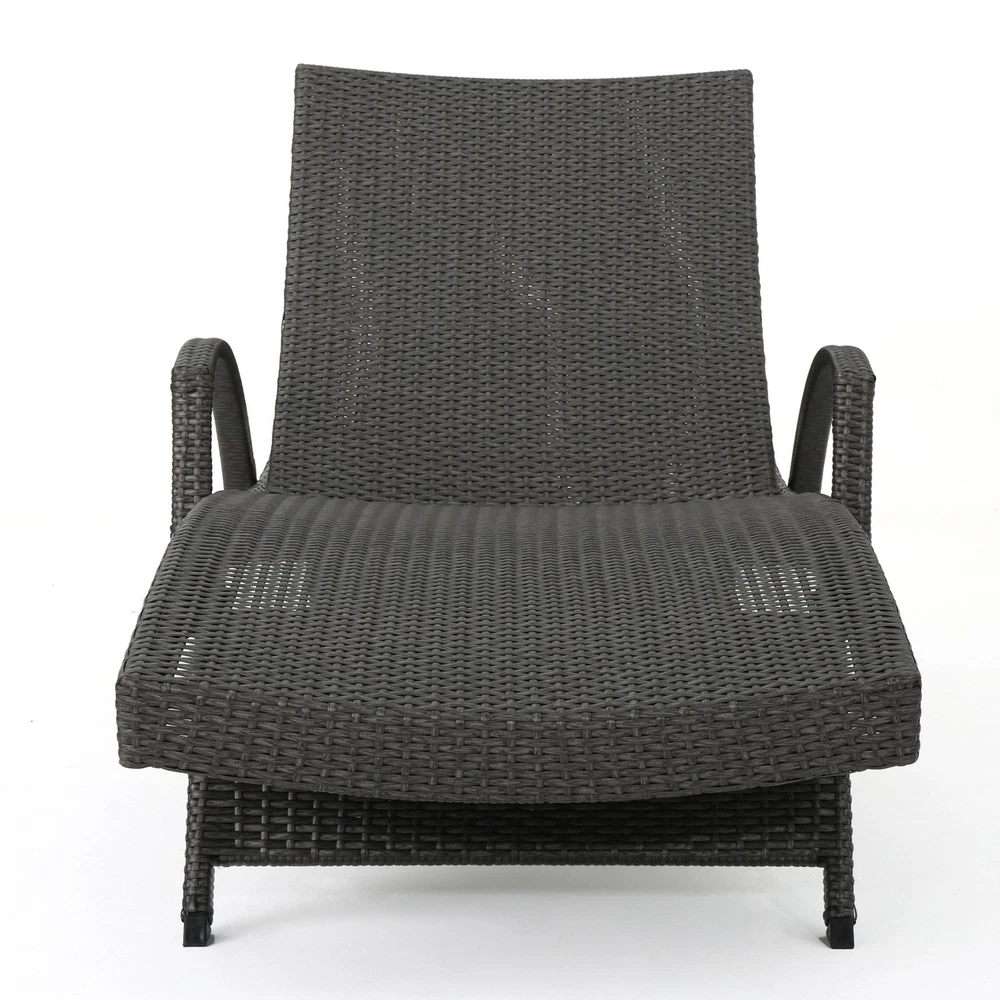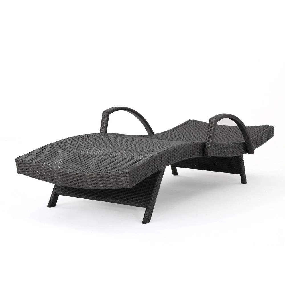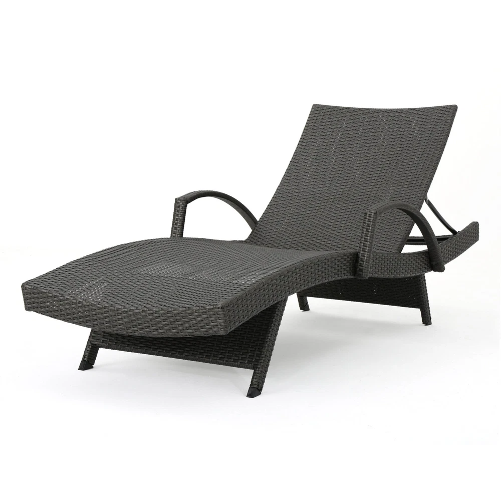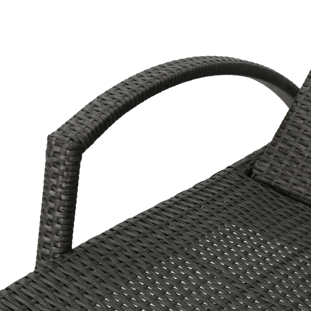 Specifications Place of Origin #originPlace# Main Color Grey Main Material Rattan Dangerous Goods #dangerFlag# Dimensions & Weights Assembled Length (in.) 79.00 Assembled Width (in.) 31.00 Assembled Height (in.) 20.50 Weight (lbs) 79.81 Product Features Add some stylish comfort to your patio decor with these wicker lounges now with arm rests. They are weather resistant and with an adjustable back and folding legs for easy stacking. Includes: Two (2) Lounge Water Resistant Adjustable back and support arms provide comfort Style: Contemporary Color: Grey Materials: PE wicker, powder coated iron Dimensions: 20.00 inches high x 31.00 inches wide x 79.50 inches deep Assembly Required Description