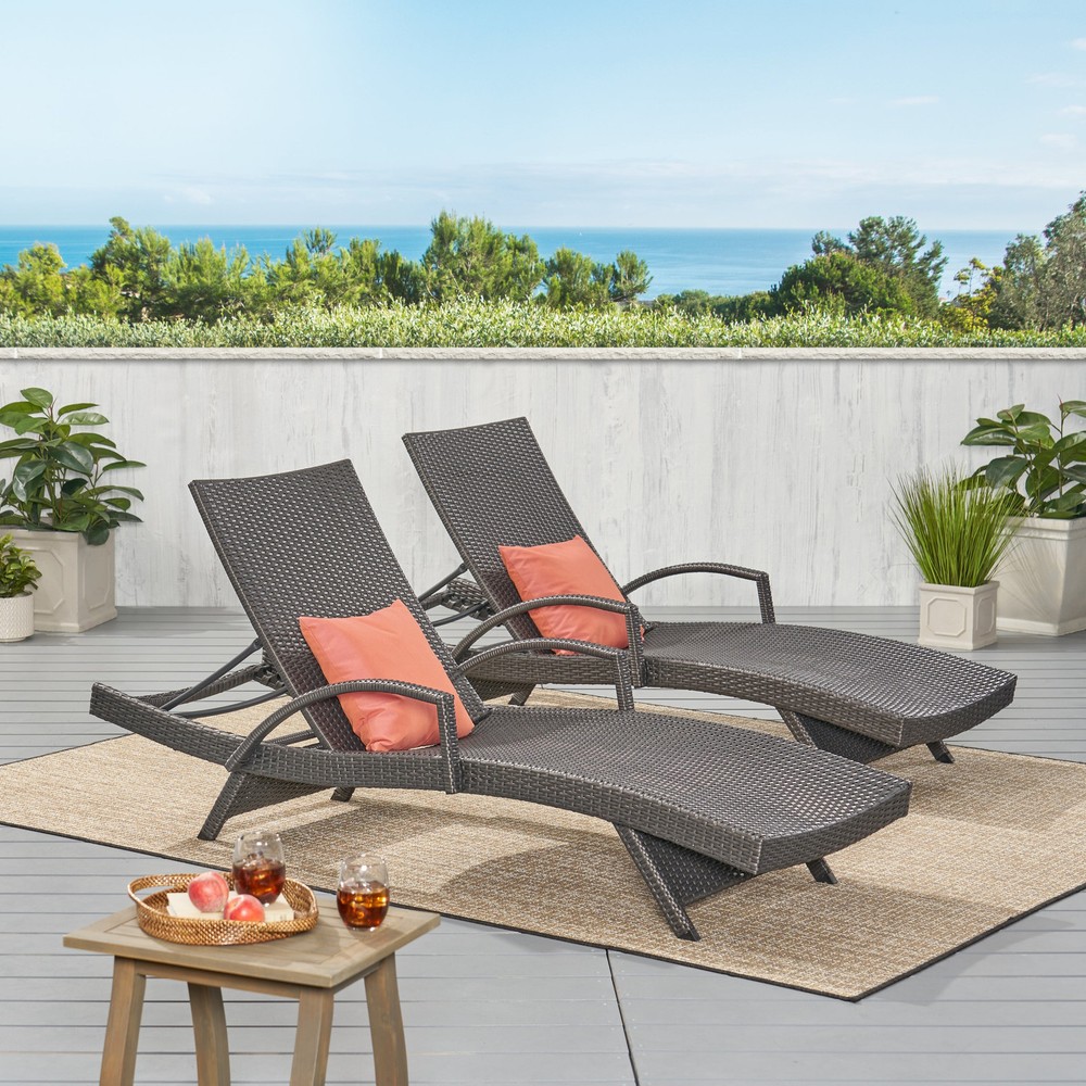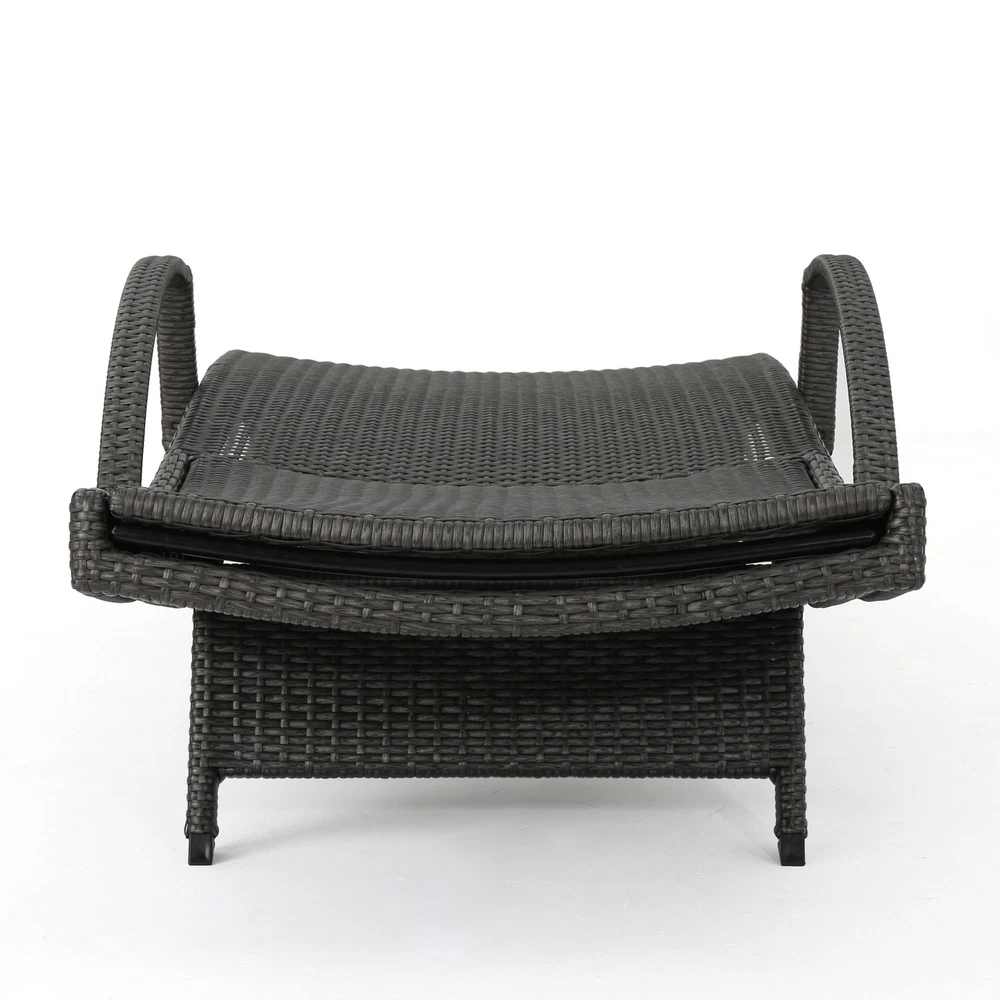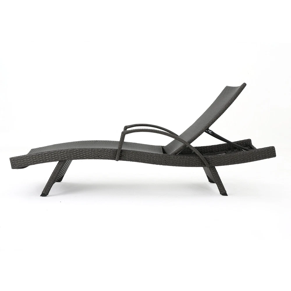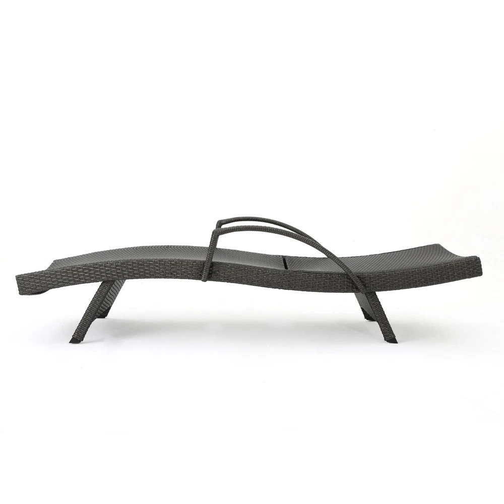 Specifications Place of Origin #originPlace# Main Color Grey Main Material Rattan Dangerous Goods #dangerFlag# Dimensions & Weights Assembled Length (in.) 79.00 Assembled Width (in.) 31.00 Assembled Height (in.) 20.50 Weight (lbs) 79.81 Product Features Add some stylish comfort to your patio decor with these wicker lounges now with arm rests. They are weather resistant and with an adjustable back and folding legs for easy stacking. Includes: Two (2) Lounge Water Resistant Adjustable back and support arms provide comfort Style: Contemporary Color: Grey Materials: PE wicker, powder coated iron Dimensions: 20.00 inches high x 31.00 inches wide x 79.50 inches deep Assembly Required Description