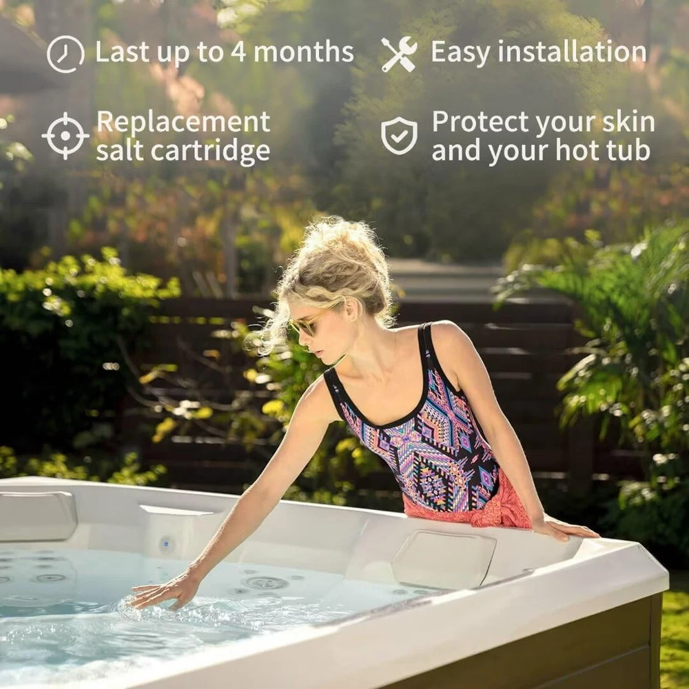 【APPLICABLE】Compatible with Hot Springs Highlife Series, Hot Spring Limelight Series, Caldera Utopia Series and Caldera Paradise Series produced in 2019 or later. 【ECONOMICAL CHOICE FOR WATER QUALITY IMPROVEMENT】Salt system cartridges combined with the salt system of the hot tub can effectively reduce water hardness, reduce the formation of scale and sediment, and keep the bathtub water clear and transparent. Each salt system filter has a service life of up to 4 months and does not need to be replaced frequently. 【REDUCE EQUIPMENT MAINTENANCE TIME】Reducing the formation of scale helps to extend the life of the bathtub and related pipes, pumps and other equipment. Let you spend more time enjoying the spa instead of cleaning and maintaining the spa equipment. 【MORE AFFORDABLE SKIN CARE】Softened water is gentler on the skin, reduces irritation and dryness, and helps to maintain the moisture and radiance of the skin. Unlike fast-consuming skin care products, three salt system cartridges can bring you a year of skin care. 【EASY TO INSTALL】You can refer to the video or picture installation steps in our product details, and the installation can be completed in a few minutes without tools.