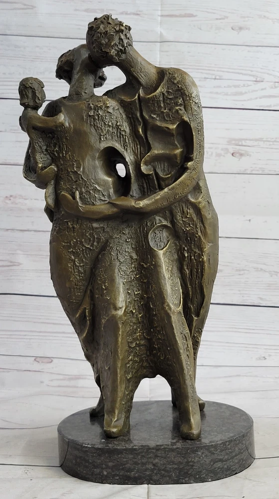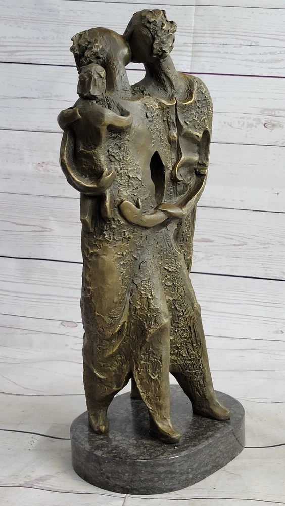 . Condition : This sculpture is in perfect condition. Bronze Dimensions with Marble Base: Height 15" X Width 7 1/2" Marble Dimensions: 7 1/2" X 6" Height without base: 14" Weight: 17 LBS Inventory: 60X23886906 This captivating bronze sculpture captures the essence of familial love and unity, portraying an abstract couple posing gracefully for a timeless family portrait. The lady of the house stands proudly, cradling her baby in her arms, while her husband, exuding a sense of ease and warmth, places a comforting hand on his wife's shoulder. Both adorned in their finest attire, the couple emanates an aura of sophistication and elegance, embodying the enduring bond of a loving family. Handcrafted with meticulous attention to detail, this exquisite sculpture reflects the artistry and skill involved in its creation. Crafted using the esteemed "Lost Wax Method," the sculpture showcases intricate textures and intricate features, capturing the depth and emotion of the familial bond. A rich brown patina finish lends a timeless quality to the piece, highlighting its impeccable craftsmanship and ensuring its lasting allure. Mounted securely on a sleek marble base, this sculpture stands as a testament to the enduring legacy of Salvador Dali's artistic vision. The harmonious blend of the lustrous bronze and the polished marble base adds an element of sophistication and stability, making it an ideal centerpiece for any art collection or a cherished addition to a family home. Salvador Dali Abstract Couple with Baby Modern Art Bronze Sculpture Statue Decor XN-2388 Video will open in a new window Using the eBay App? Paste link into a browser window: [isdntekvideo]