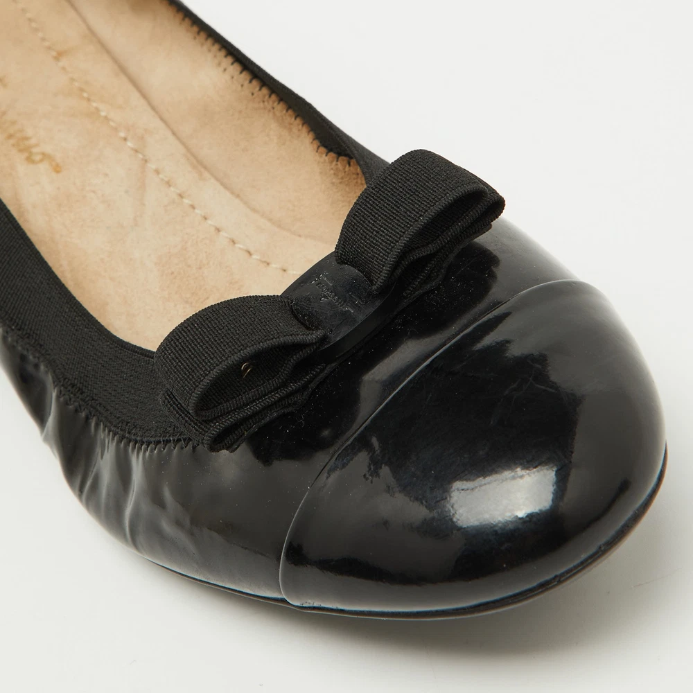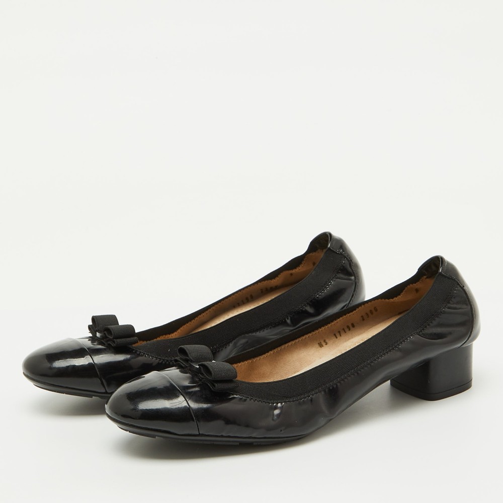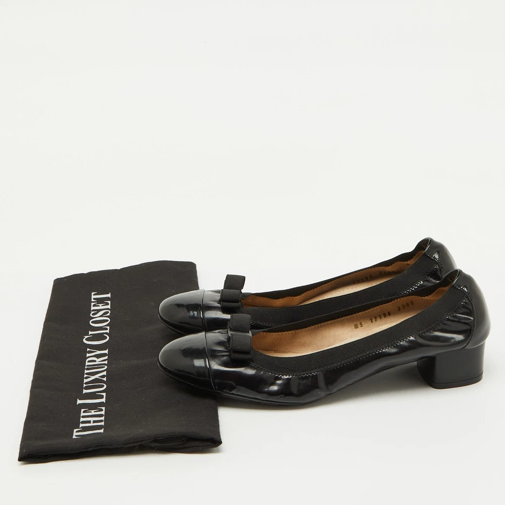 Classic and timeless, these Salvatore Ferragamo pumps showcase a glossy black patent leather finish. The signature Vara bow and comfortable block heel make them a perfect blend of sophistication and practicality. A go to choice for effortless everyday elegance.Certified by The Luxury Closet - This item has gone through a detailed authentication process overseen by our experts. We offer a lifetime guarantee of authenticity on all our items. Import duties, taxes and charges are not included in the item price. These charges are the buyers responsibility. Please check with your country’s customs office to determine what these additional cost will be prior to buying. Our eBay Store About Us Contact Us Add to Favorite Sellers Salvatore Ferragamo Black Patent Leather Vara Bow Block Heel Pumps Size 39.5 $171.6 Classic and timeless, these Salvatore Ferragamo pumps showcase a glossy black patent leather finish. The signature Vara bow and comfortable block heel make them a perfect blend of sophistication and practicality. A go to choice for effortless everyday elegance. Product Details Brand Color Black Dimensions Material Patent Leather Size 39.5 Outsole Width 8.5 cm Outsole Length 24.5 cm Heel Height 3.5 cm Includes The Luxury Closet Packaging Certified by The Luxury Closet This item has gone through a detailed authentication process overseen by our experts. We offer a lifetime guarantee of authenticity on all our items. How We Check The in-house team of experts at The Luxury Closet is highly trained to verify the authenticity and the condition of the luxury products. They ensure that only 100% authentic items are put on sale.The evaluation process is unique with its own mix of assessment criteria and differs according to the category. Each item is evaluated based on the following combination of hallmarks, hardware, stitching, symmetry, material, craftsmanship, stamping, codes, hologram stickers, and packaging. Our authenticators also check if the items have been modified or amended (e.g., aftermarket diamonds, replaced batteries, repaired bags, etc.) International Buyers Import duties, taxes and charges are not included in the item price. These charges are the buyers responsibility. Please check with your country’s customs office to determine what these additional cost will be prior to buying.