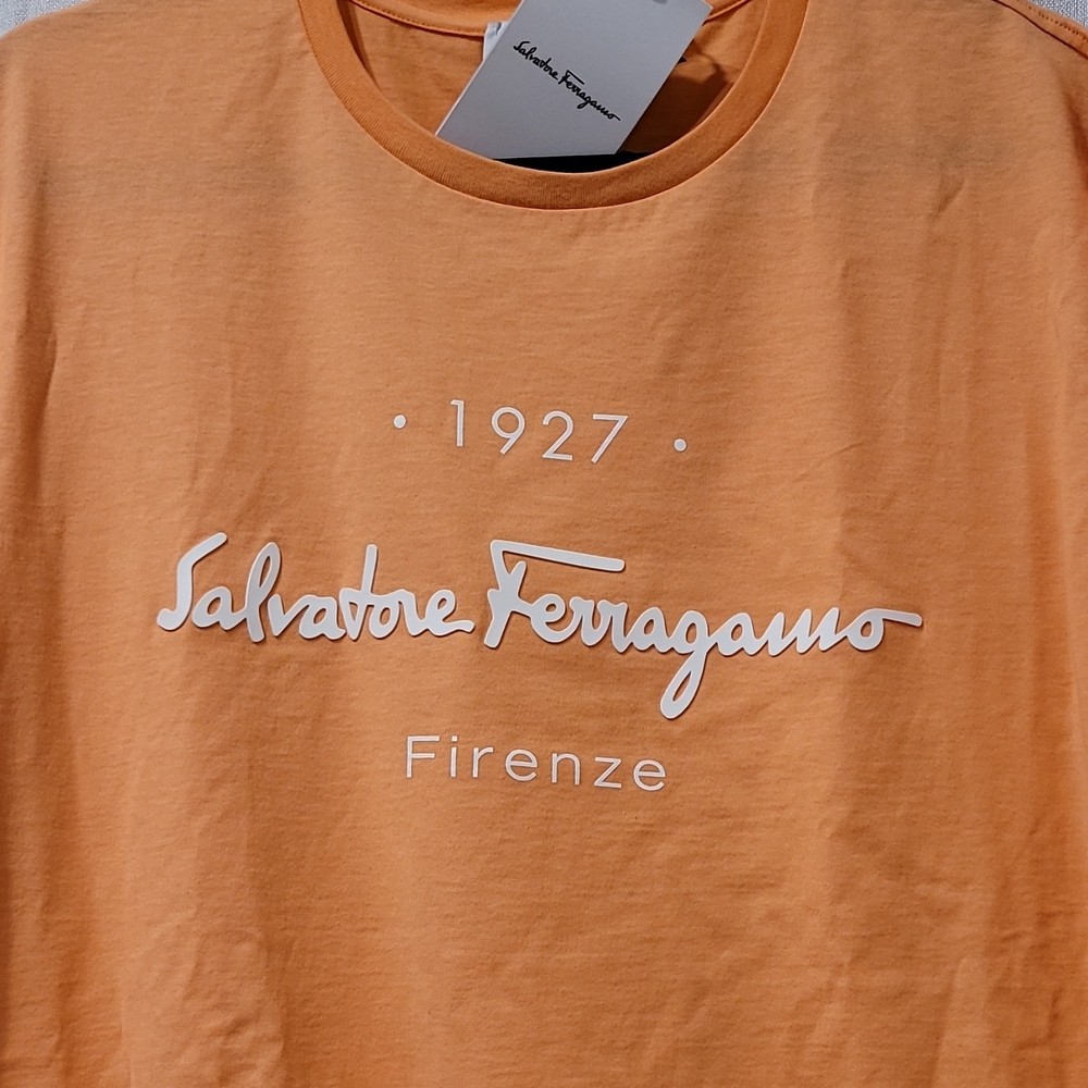 Salvatore Ferragamo Orange Graphic Logo Cotton T-Shirt Men's XL Short Sleeve