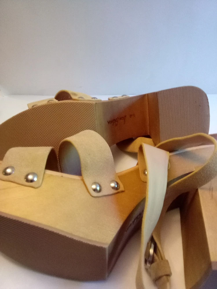 Sam Edelman Rosalind Leather Strappy Platform Heels Tan Size 9M.