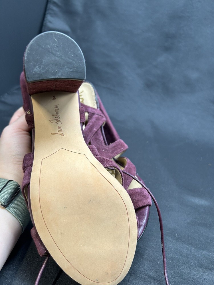 These Sam Edelman heels are a must-have for any stylish woman. The maroon faux suede strappy design is perfect for any occasion. The heels are comfortable and have a sturdy heel that is both fashionable and practical. The size 8 shoes are perfect for women who want to look and feel great. The brand is known for its quality products, and these shoes are no exception. Get ready to turn heads with these beautiful heels that will complement any outfit.