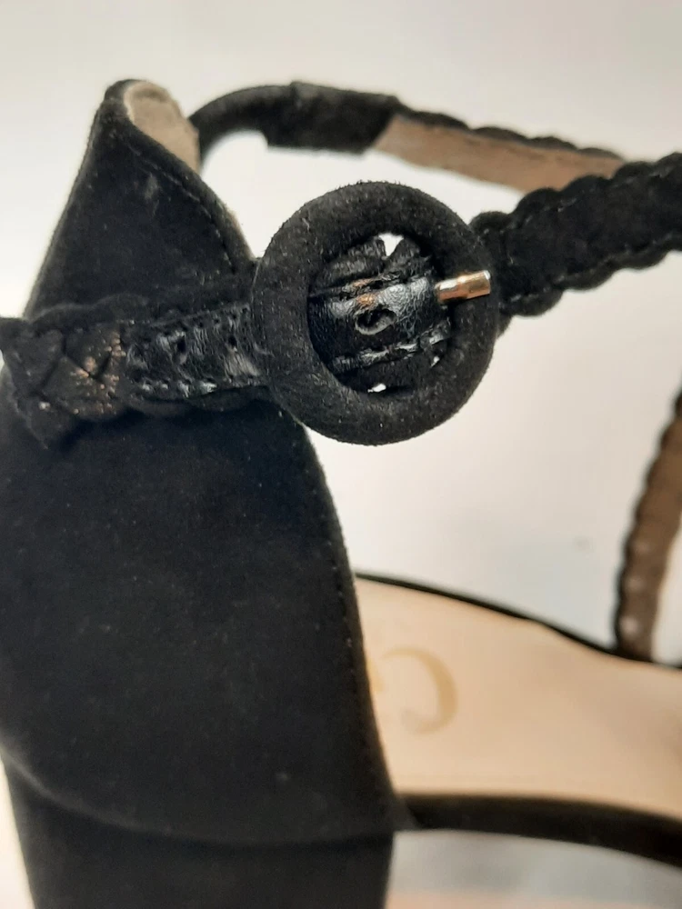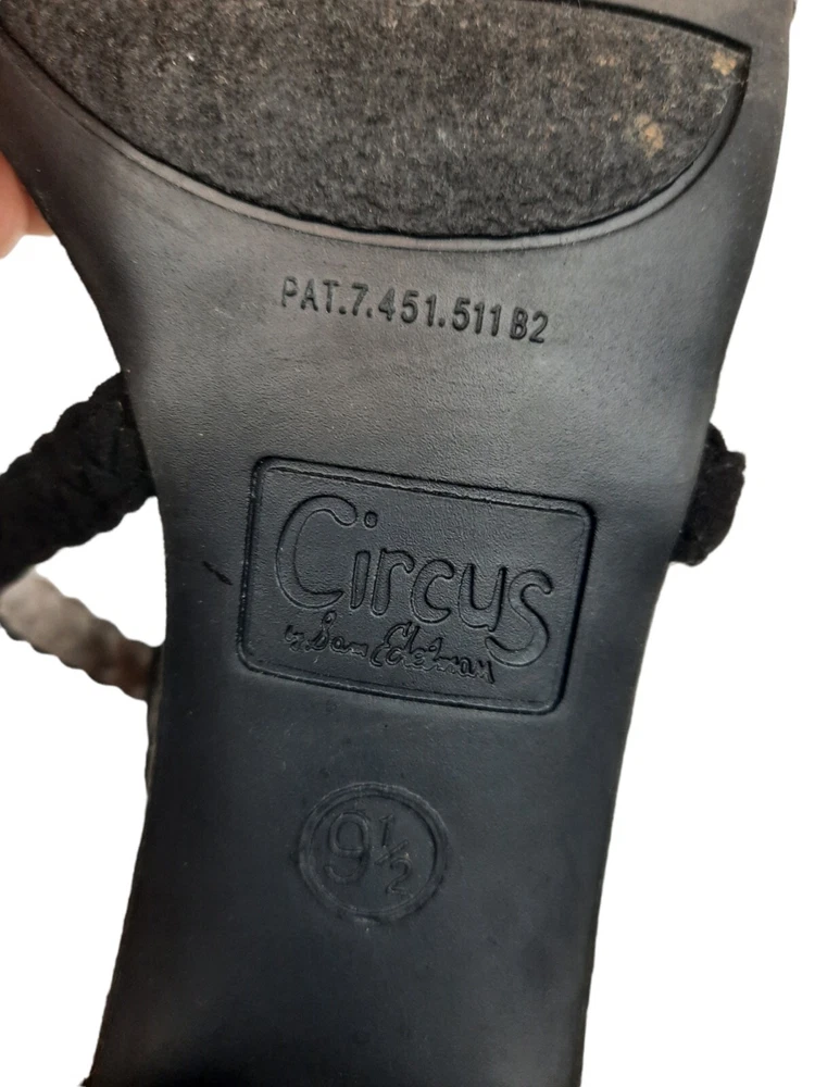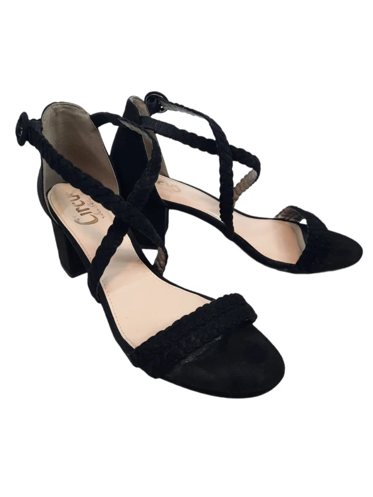 Circus by Sam Edelman Women's Black Sallie Braided Block-heel Sandals Size 9.5. In excellent condition Circus by Sam Edelman Women's Black Sallie Braided Block-heel Sandals Size 9.5. Features black faux suede, chunky block heel, braided straps with buckle closure, open toe heels. Heel height This is a pre-owned item that may show signs of wear. In excellent condition, no flaws.