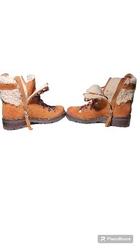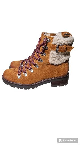 Step out in style with these women's brown suede Tenlee hiker boots from Sam Edelman. The round toe and lace-up closure ensure a comfortable fit, while the shearling fabric type and fur trim accents add a touch of luxury. Ideal for various occasions including activewear, party/cocktail, casual, and workwear, these boots are perfect for the fashion-forward woman who loves to mix style and functionality. The waterproof features of these boots make them perfect for outdoor activities, and the ankle-length shaft style ensures that they can be paired with a variety of outfits. The rubber outsole material provides excellent grip and durability, while the fabric lining material and insole material guarantee comfort and a snug fit. These boots are a must-have for any wardrobe, and they are sure to make a statement wherever you go.