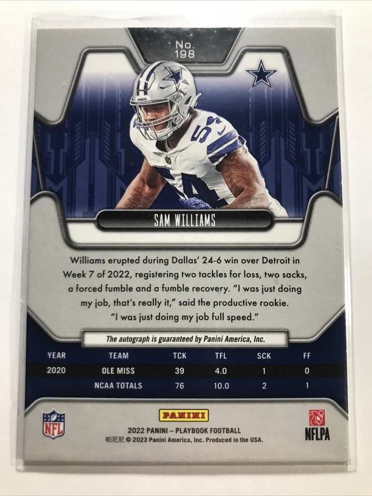 Sam Williams 2022 Playbook ROOKIE RC AUTO HOLO SP DALLAS COWBOYS /49. Condition is Ungraded. Shipped with USPS Ground Advantage.