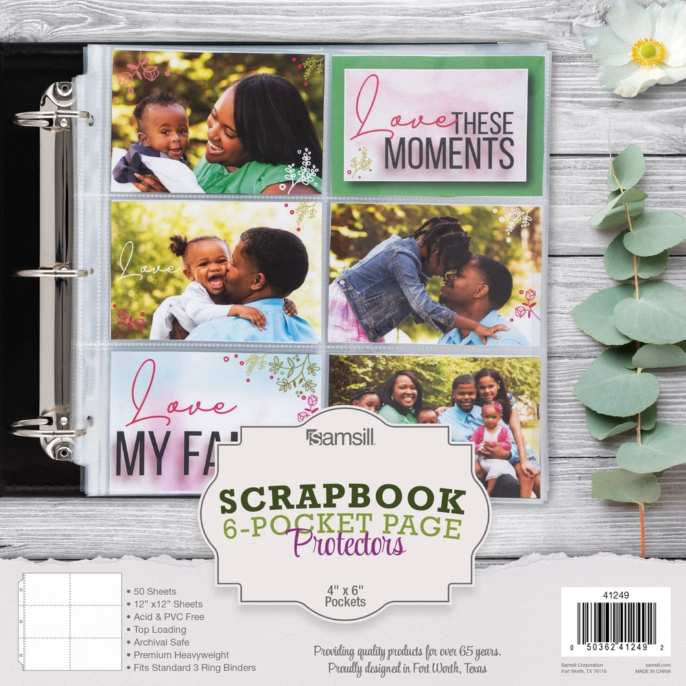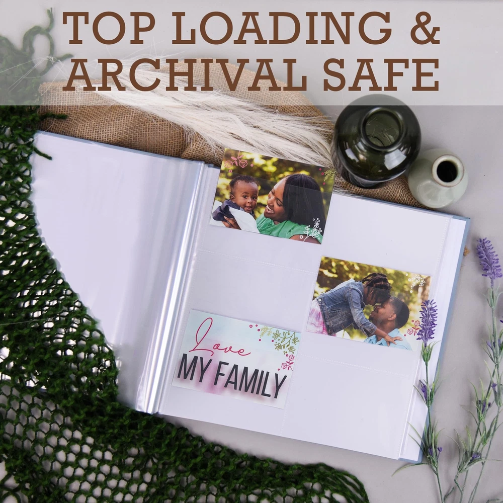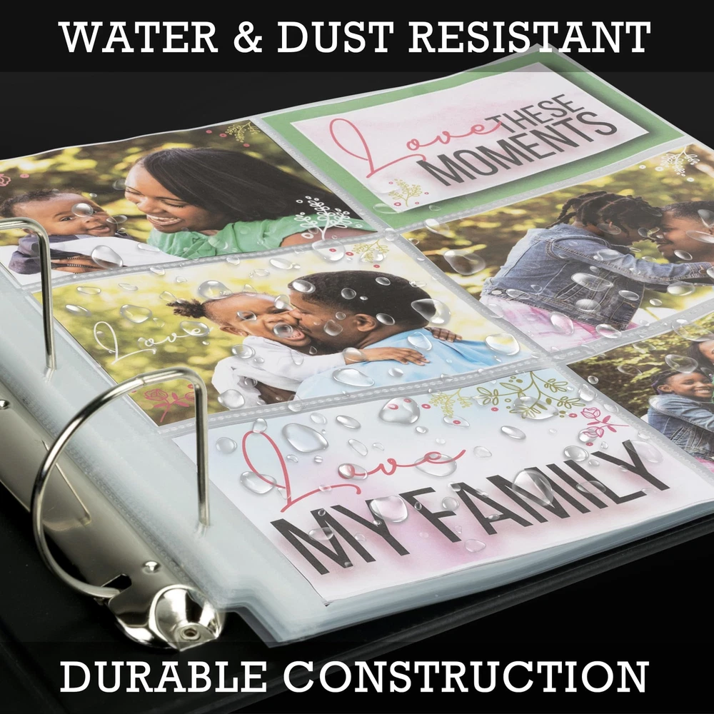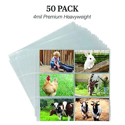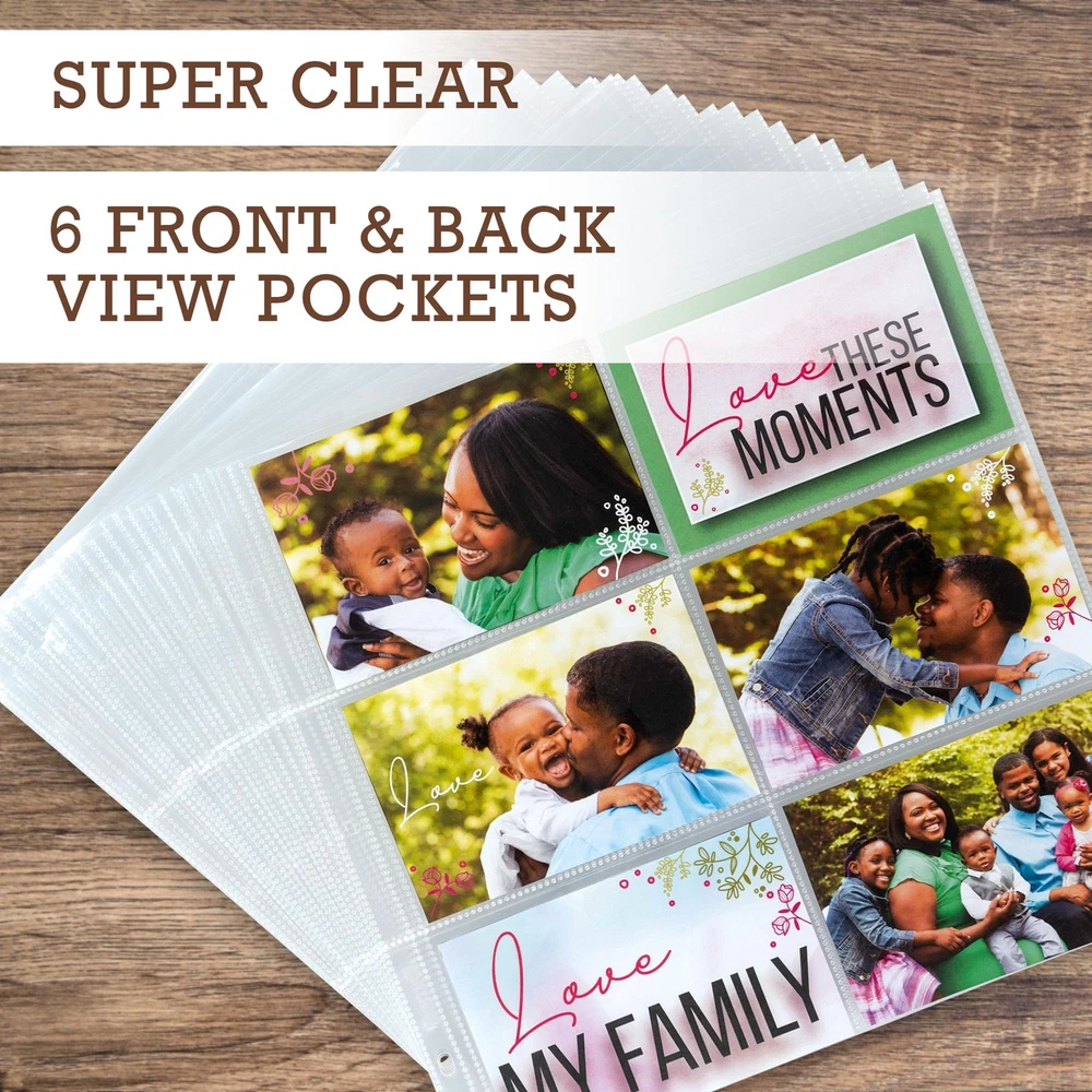 This 50 pack of 12x12 inch photo protectors are the highest quality refill pack, designed to ensure that all of your contents and memories remain safe, whether they are used daily or stored away in your scrapbook album. Made with thick polypropylene, these clear page protectors are durable and intended for frequent daily use. Our acid-free, archival safe protectors are perfect for your scrapbook paper, photos, scrapbooking memorabilia, and other supplies. They will keep all your memories intact, as ink won't be lifted or transferred onto the protectors. You can enjoy all your memories for years to come! Each page is large enough to fit two complete layouts, front and back. The top-loading feature makes it easy to slide your pages into 6 different 4x6 inch pockets of the sheet protector without any worries. These 6 pocket photo protectors are perfect for adding additional photos to your scrapbook album or scrapbook binder. They will fit most 3-ring scrapbook binders or scrapbook photo albums designed to hold 12x12 inch sheets. Get creative and design scrapbook layouts, Photo albums, sticker layouts and more! Scrapbook Refill Pages: This 50 pack of 12x12 inch scrapbook photo protectors are top-loading sheets and feature a single clear pocket on each slot to easily refill photos. Each sheet has 6 pockets measuring 4x6 inches and fits 2 pictures or sheets, front and back Super Clear Visibility: Made with polypropylene, the refill page protectors provide super clear visibility from front to back to display your precious pictures. The clarity enhances the overall presentation of the paper or photos, giving it a more complete look Photo Album Size: Our 6 pocket photo album sheets fit in most standard 3 ring scrapbook binders designed to hold 12x12 inch paper. Ensures a secure and snug fit for your pictures, collectibles, or DIY projects Heavy Duty Material: With thick high-quality polypropylene, our protector sleeves can withstand frequent handling and storage without tearing or bending. Provides extra protection to photos or postcards from wear and tear, ensuring they stay in good condition Archival Safe: These acid-free, PVC-free protectors prevent the transfer or lifting of ink, preserving the quality and appearance of your images. With archival safe scrapbook photo refill pages, you can be confident that your valuables will last for years to come