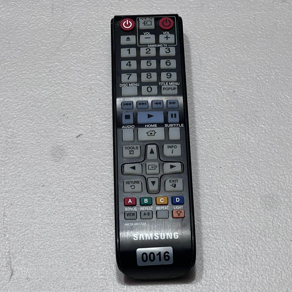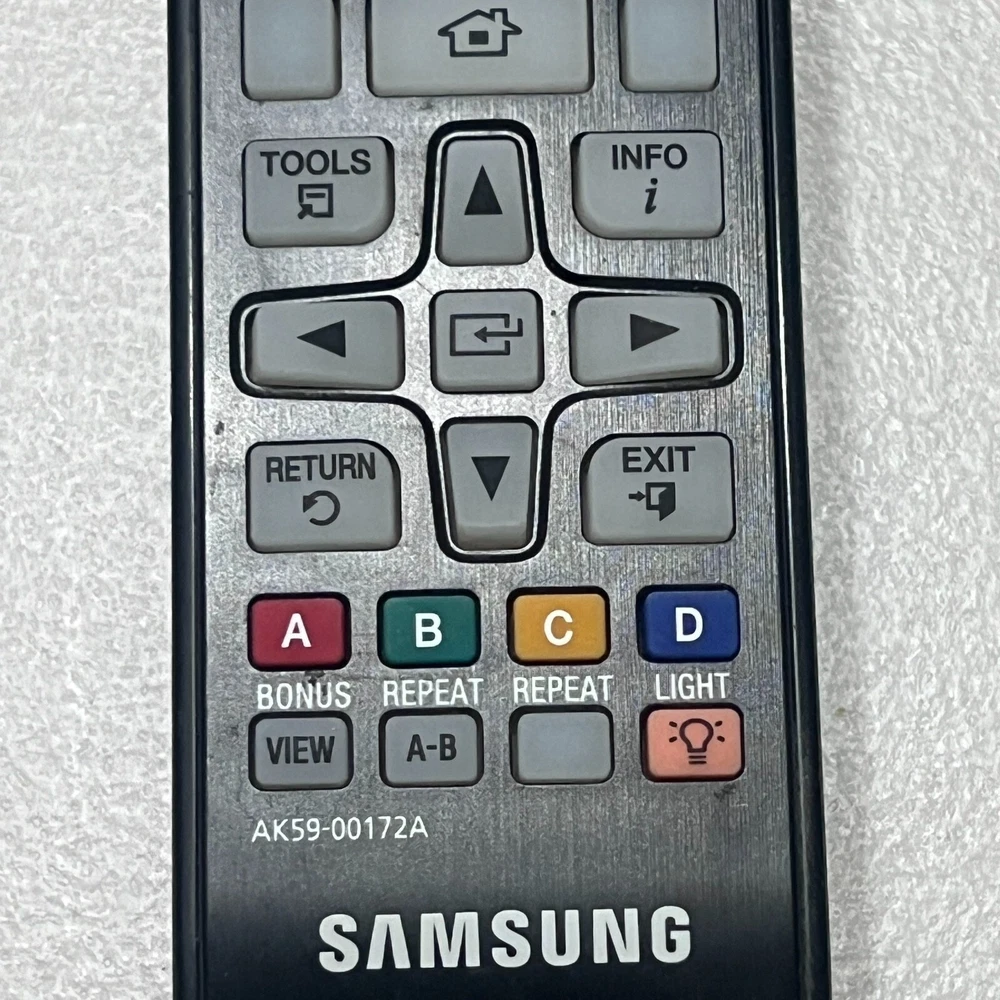 Samsung AK59-00172A Black TV Remote Control Multifunction Wireless Rectangular The Samsung AK59-00172A Black TV Remote Control is a versatile and multifunctional wireless device designed for seamless control of Samsung televisions. With a sleek rectangular design, it offers a comfortable grip and intuitive button layout for easy navigation. This remote allows users to access a range of functions, including power, volume, channel control, and input selection, all with a single device. Its wireless connectivity ensures a smooth, responsive experience without the need for direct line-of-sight, making it a convenient and reliable accessory for Samsung TVs. The black finish gives it a modern, stylish appearance that complements your home entertainment setup.