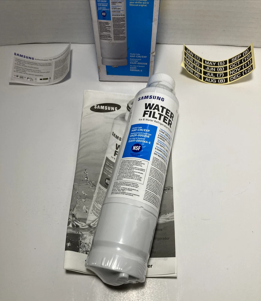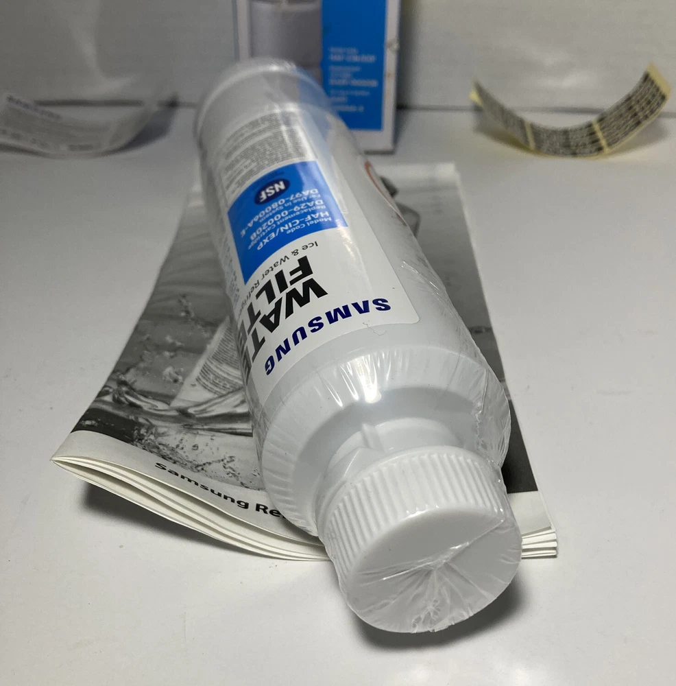 Samsung DA29-00020B HAF-CIN/EXP Refrigerator Fresh Water Filter Cartridge- 1Pack. The filter is new and still sealed in the plastic. The box shows some wear from storage. The item will ship out safely and securely the same or next business day.
